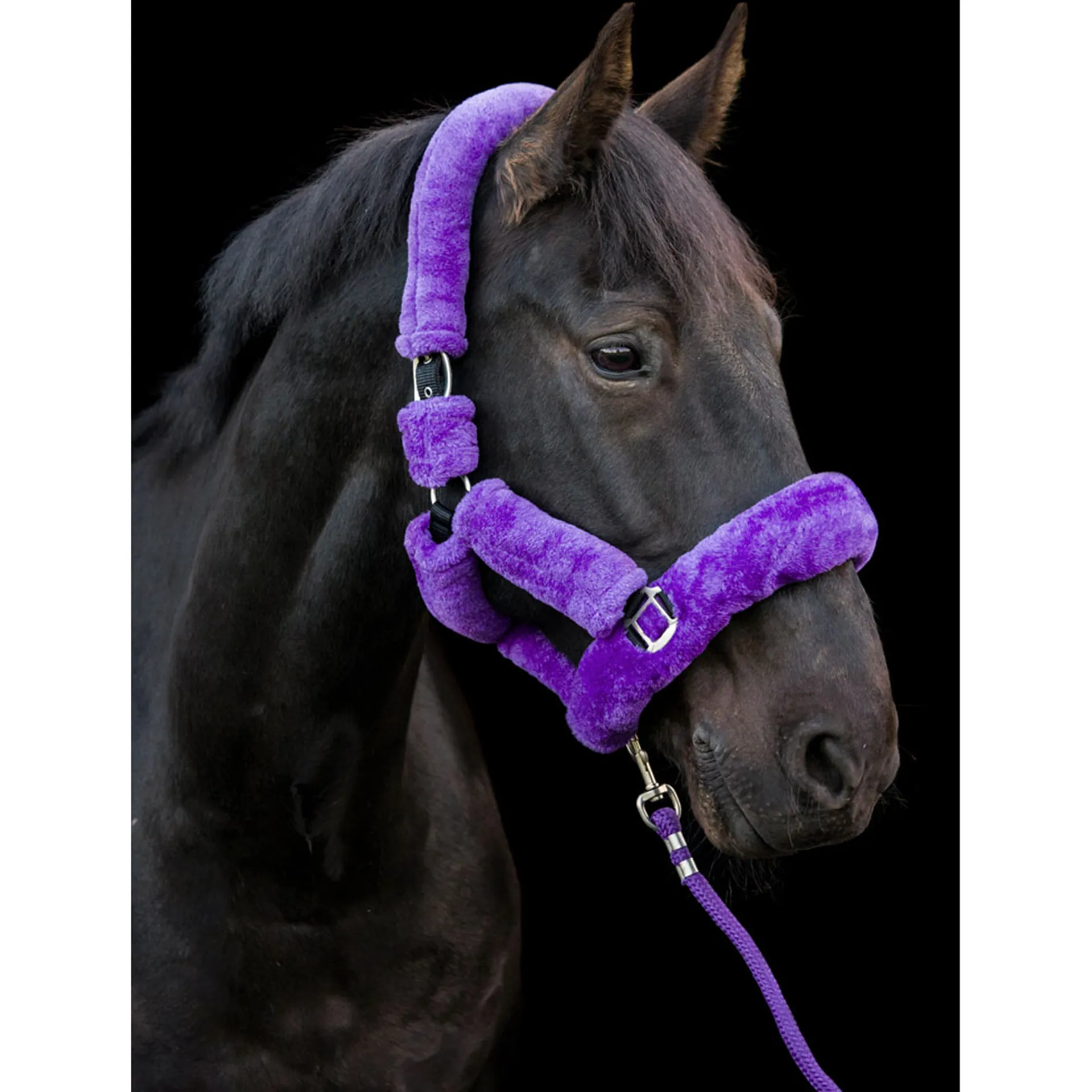 The ultimate in horse luxury. This headcollar is so soft it needs to be touched to be believed. The Cameo Deluxe headcollar has soft padded synthetic sheepskin on all sections making this the most comfortable headcollar a horse can wear.Our super soft deluxe synthetic sheepskin is on all sections of this headcollar, making it perfect for travelling or for use with sensitive horses. Features include quality no rust fittings that are adjustable both sides of the headpiece. Strong yet supersoft this is bound to be a favourite for you and your horse.