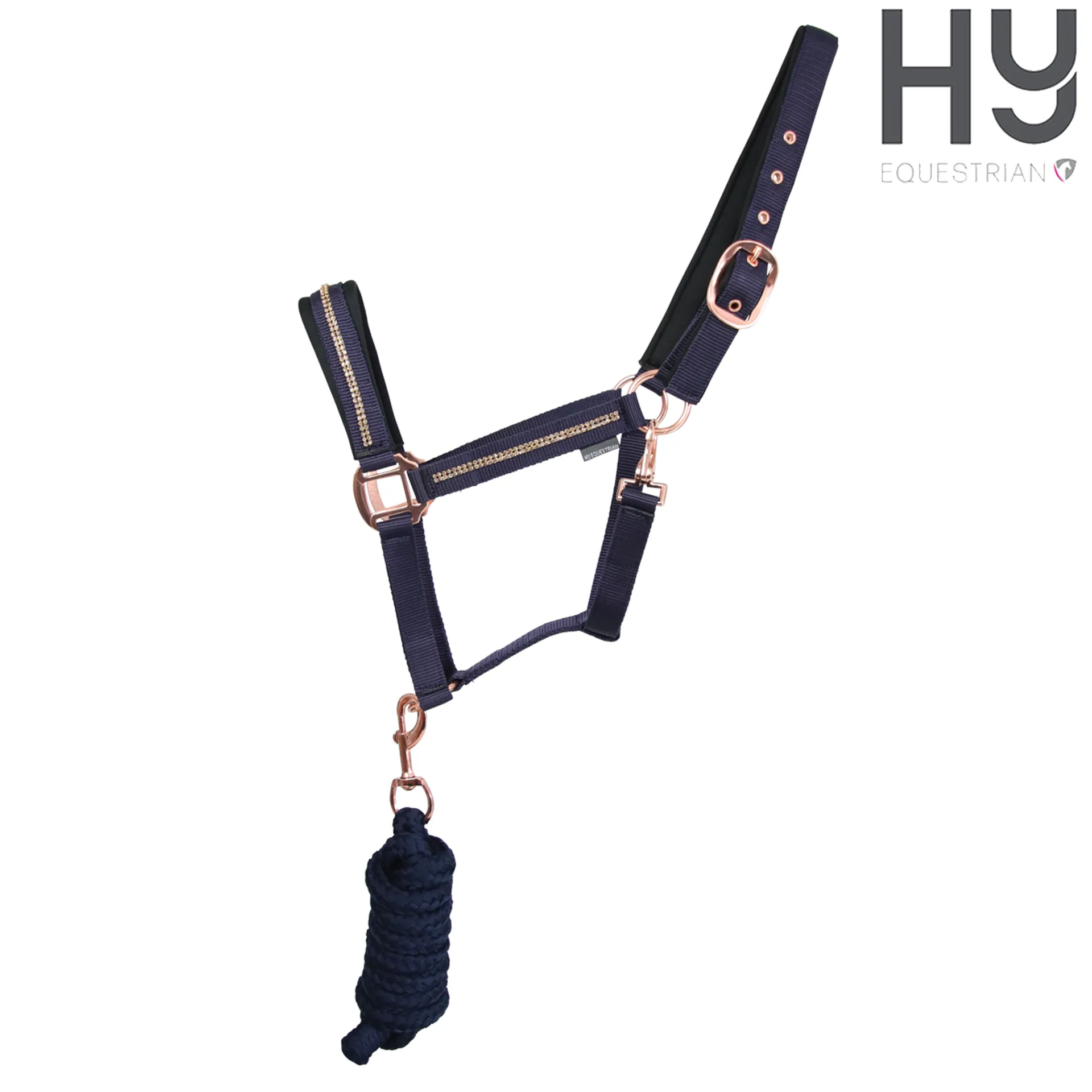 Hy Equestrian Sparkling Head Collar And Lead Rope Set - Navy/Rose Gold