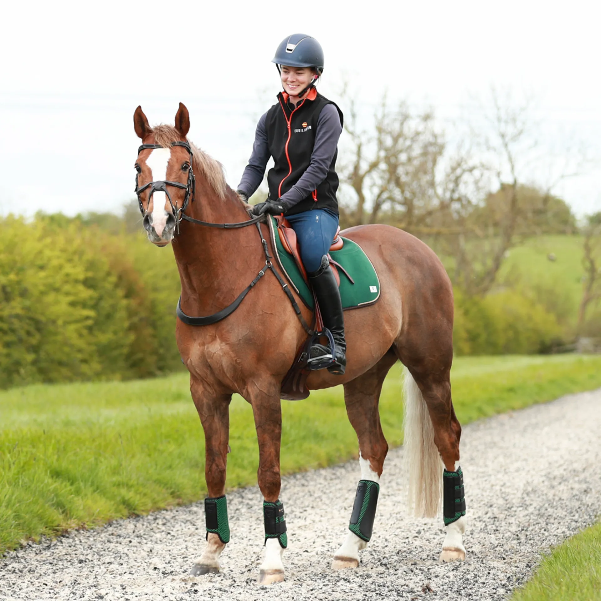 - Protects from concussion and penetration injuries. Tested to protect if the horse was to hit a solid fence or strike itself.
