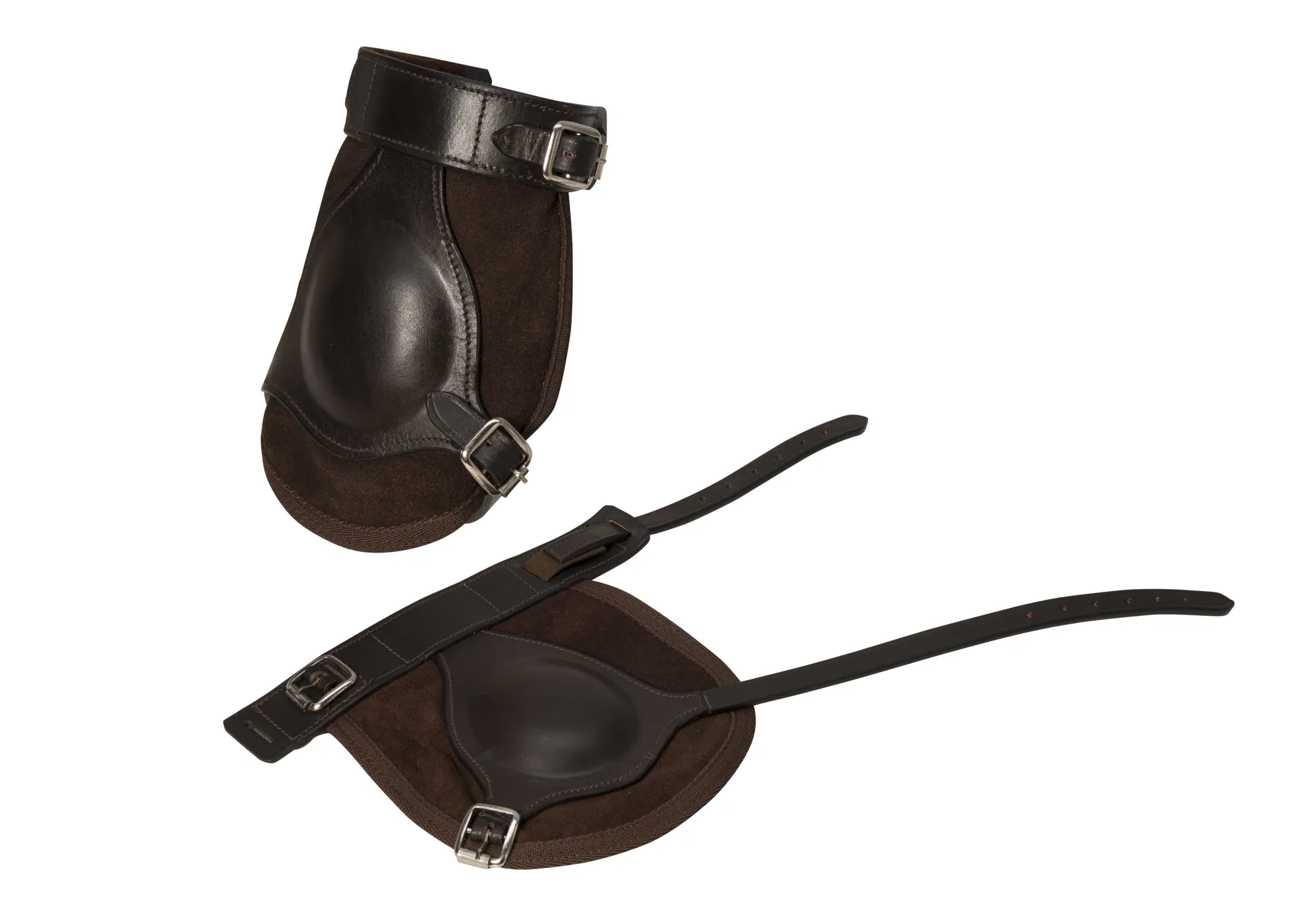 A pair of suede and leather knee boots to protect your horse when hacking out.Features: