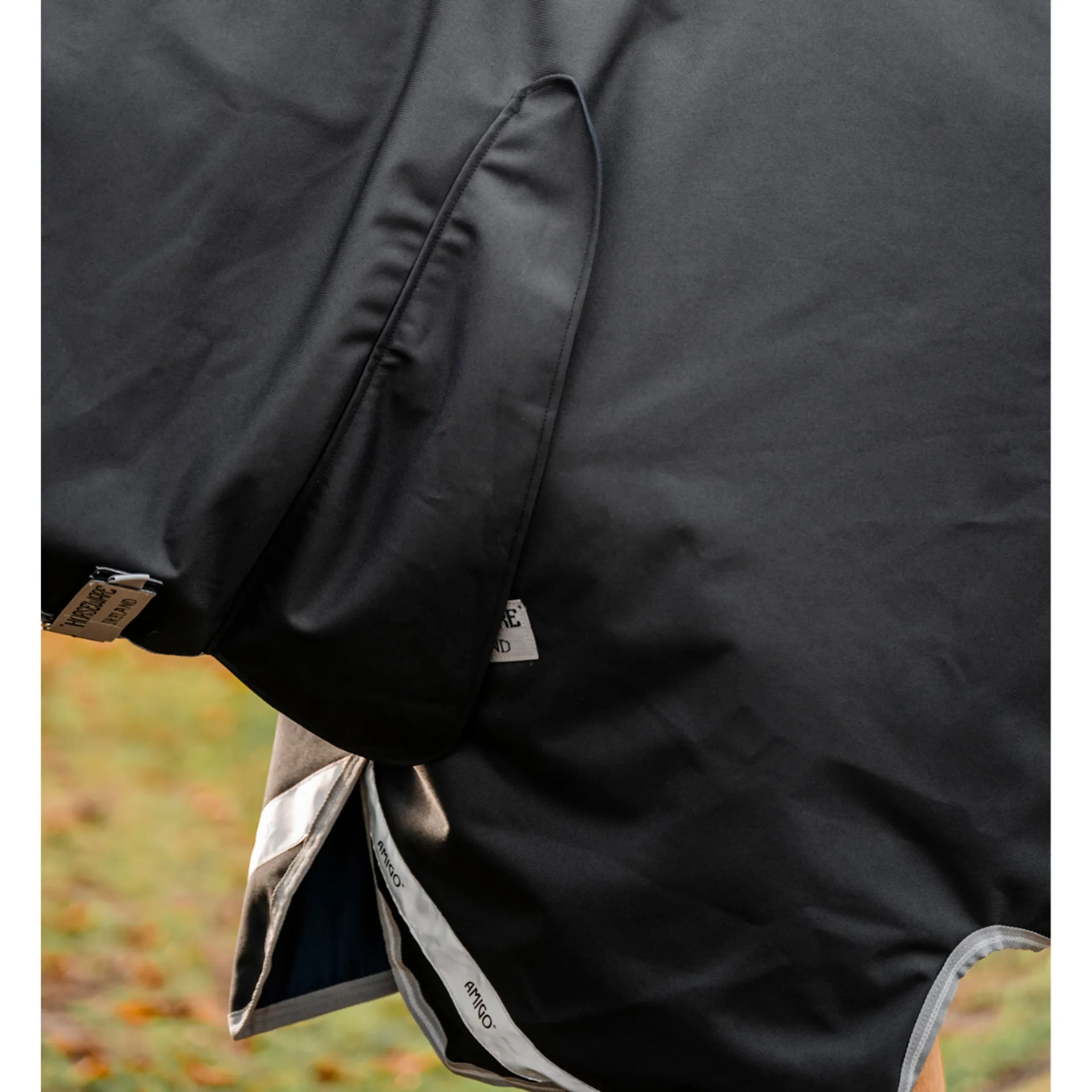 Reflective strips improve visibility for safer turnout in low light conditions. V-Front Closure, dual leg arches, wipe clean tail cord, and three cross surcingles ensure secure fit and freer movement. Inner loops allow for optional leg strap use.