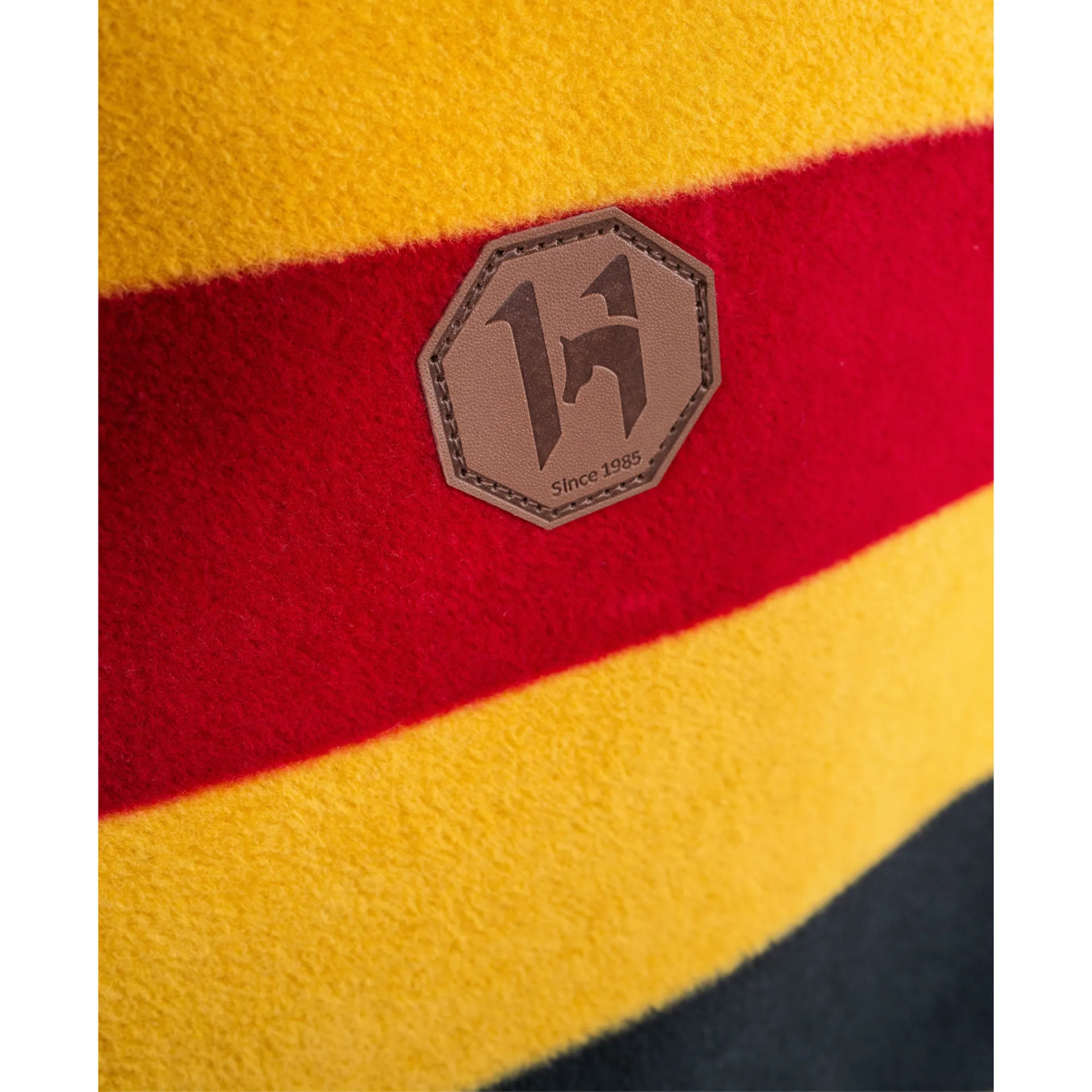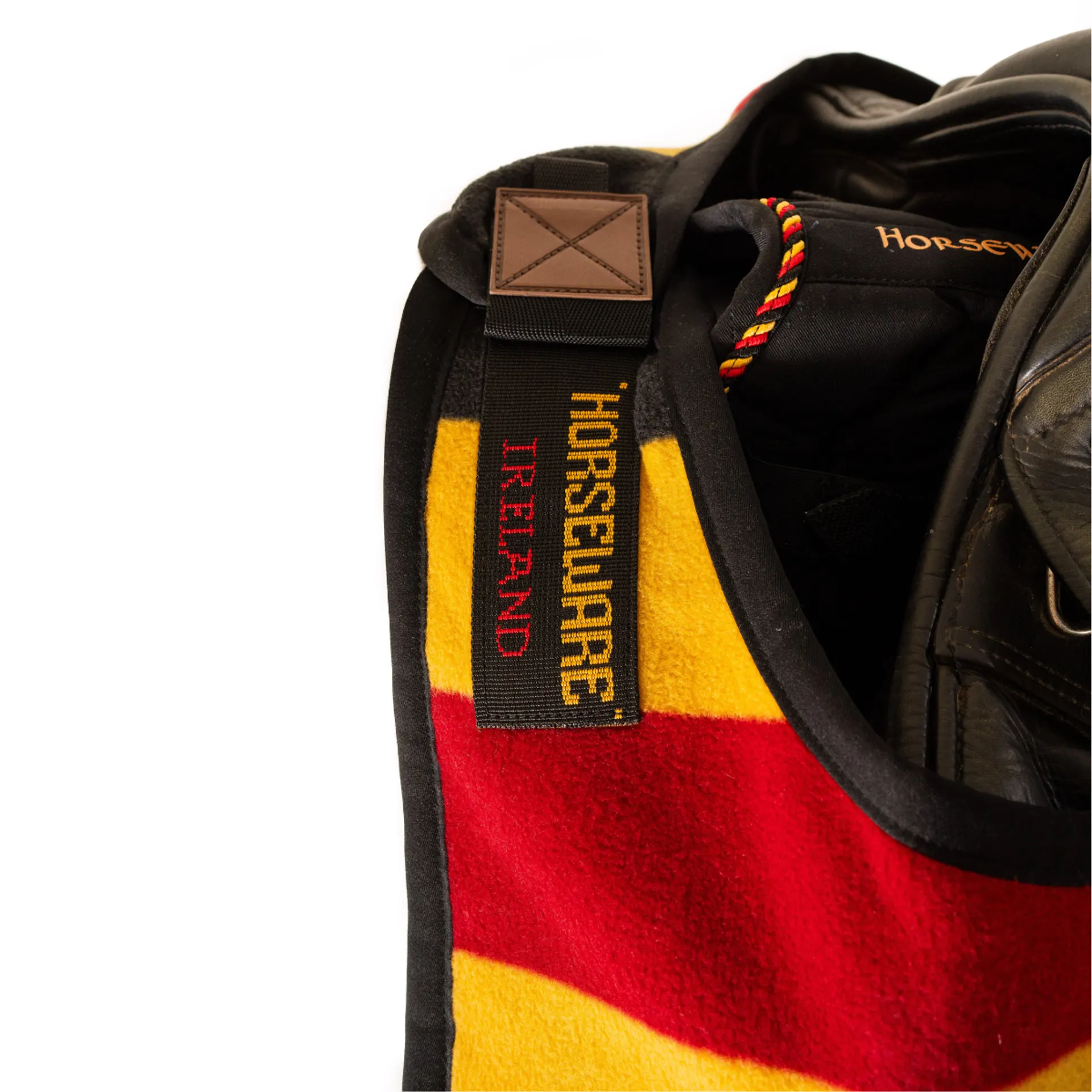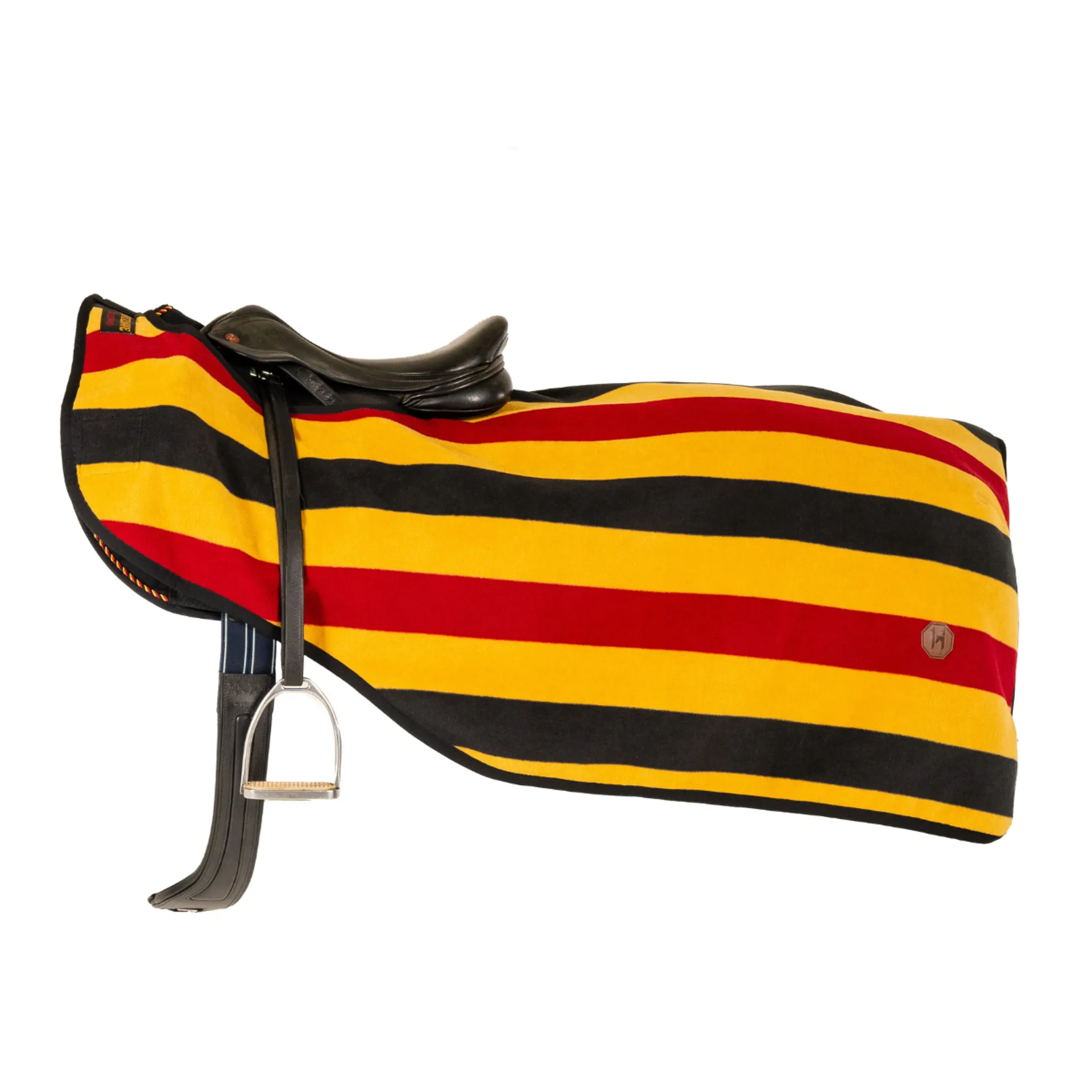 Newmarket Witney stripe pattern and timeless heritage leather detailing bring eye-catching style to the quarter sheet. Secures at front of saddle with velcro front closure and behind with tail string.