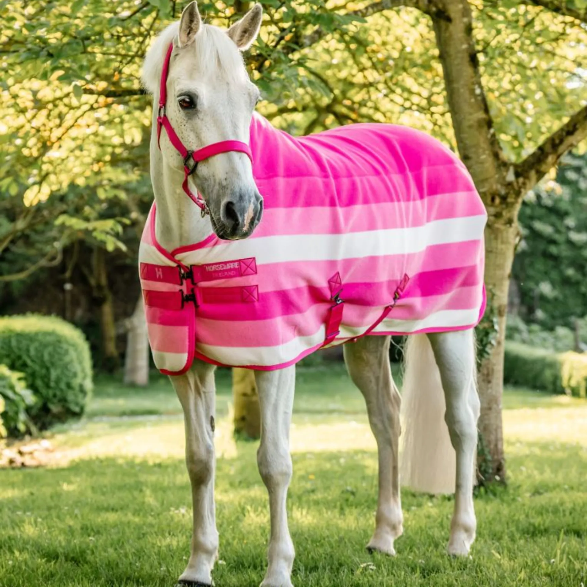 Add a touch of luxury to your pony's wardrobe with the Horseware® Newmarket Pony Fleece Cooler, featuring our iconic stripe pattern. Beautifully soft, the high-quality fleece is double bonded and anti-pilling. Its exceptional breathability and moisture-wicking properties make it ideal for stable use, travel, or show days.