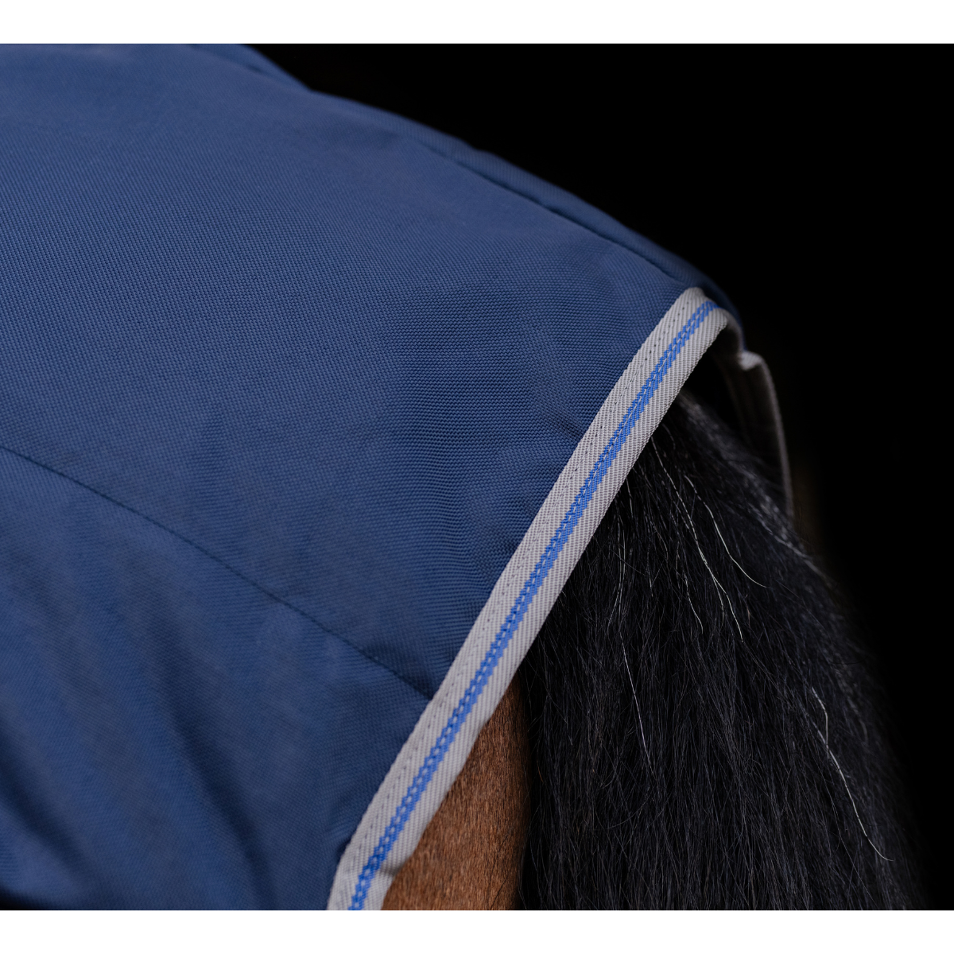 The 1000D polypropylene outer in our classic cut design with double front closures offers a secure fit. A cozy fleece shawl collar with integrated, cushioned wither pad lifts the rug to sit gently on your horse's mane and sensitive wither area, helping to prevent rubs and pressure points.