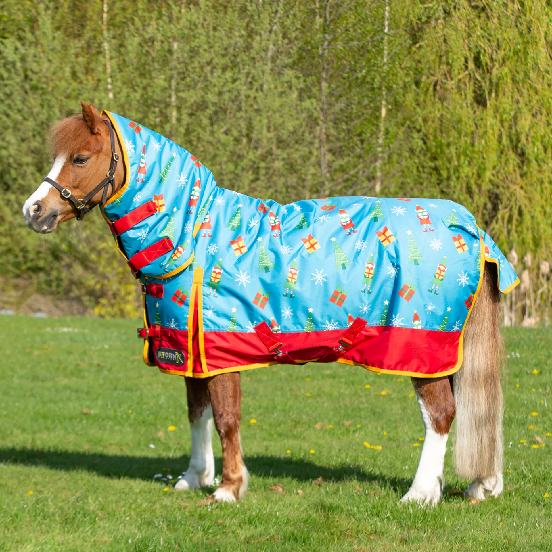 Question(s) answered about Hy StormX Original Jolly Elves 200 Combi Turnout Rug - Winter Blue/Festive Red