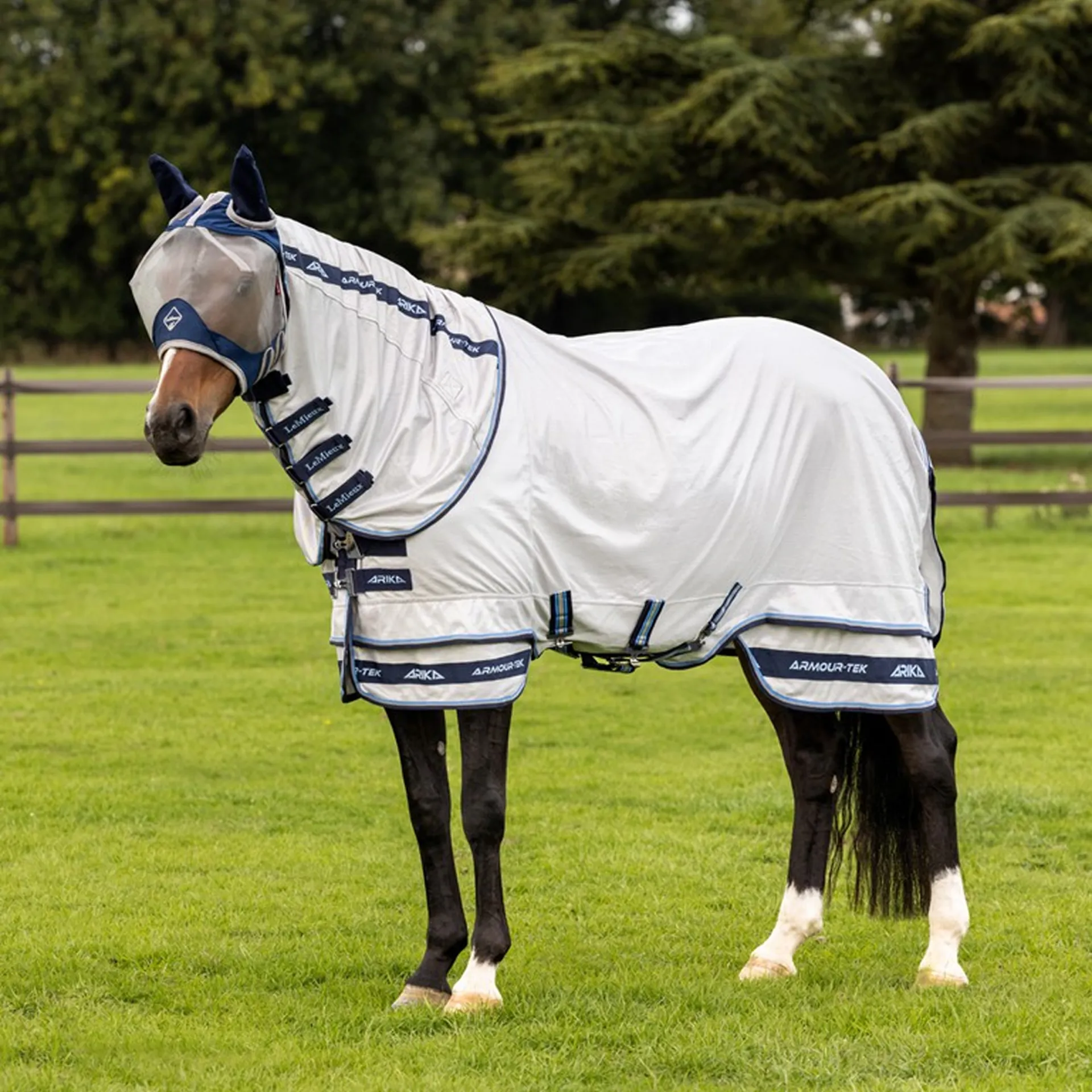 A super lightweight fly sheet with 85% UV protection for technically advanced fly defence in warm weather.Innovative micro mesh, which provides a second skin fit and a highly breathable barrier from flies and bugs, helps regulate your horse's temperature.The patented two-part skirt provides a break in tension around the hemline, for freedom of movement while grazing or playing in the field.The extended, shaped belly flap maximises coverage and features a three-strap surcingle with a detachable central strap. Antibacterial, anti-static lining enhances shine on the coat while helping to self-right the rug. The design registered 45° angled T-bar front closure distributes pressure to prevent rubbing on the point of the shoulder and across the chest.An extra-long tail flap with an elasticated PVC-coated fillet strap guards the rear end. A detachable neck with a lined mane panel offers optional extra cover.