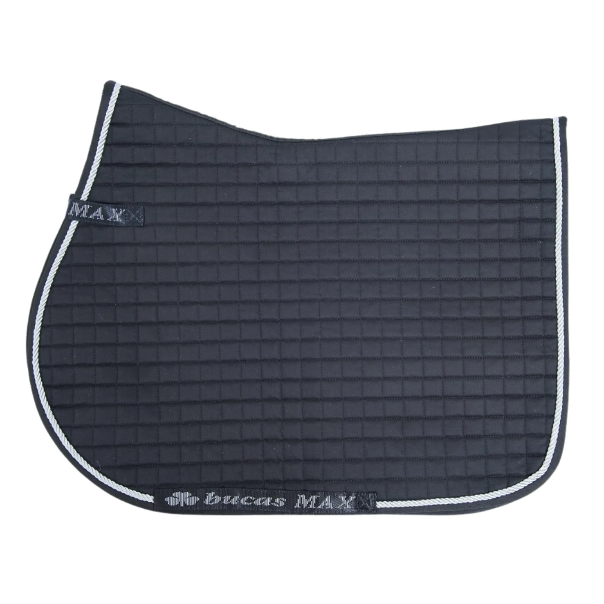 The Max Saddle Pads are available in Black with silver piping, Navy with silver piping, Navy with gold piping or White with white piping and in Dressage and Jumping styles.