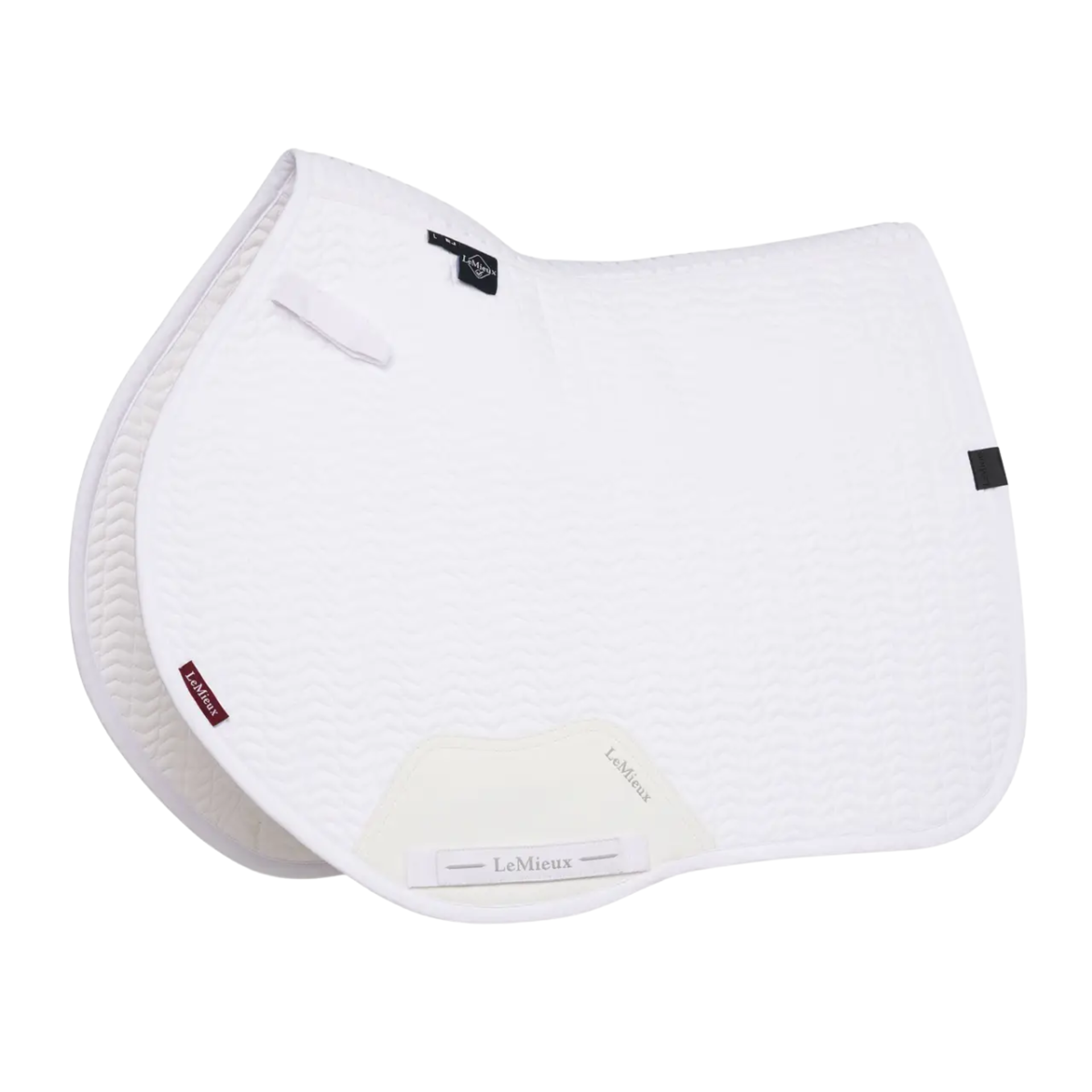 Designed for elite riders with technical performance that everyone can enjoy, the soft shell fabric of the Essence Collection of saddle pads exudes class.The contour quilted soft shell upper, meticulously designed to hug your horse's curves without wrinkling, is teamed with a soft, breathable self-cool lining. The cooling material is woven with cooling fibres, controlling heat by transferring heat away from the skin and wicking sweat efficiently to cool your horse. The warmer your horse gets, the harder the moisture-activated cooling lining works under the saddle. Combined with a full 3D carbon mesh spine for maximum airflow, this is a saddle pad uniquely designed for hardworking horses.The high wither shape reduces pressure and enhances your saddle's fit. Elasticated saddle straps, thoughtfully designed to be slimmer at the point of connecting to the D-ring, leave room for extra accessories catering to your specific training needs.The whole pad benefits from extensively researched, soft, friction-free binding that is specially fabricated to contour the edges smoothly. This technique helps retain the perfect saddle pad shape and binding profile. Sporty rubberised piping gives the pad a clean, athletic aesthetic.The sporty matte-textured faux leather girth protection area is complemented by an embossed logo. Our signature LeMieux hidden girth loop channels mean you can precisely place your girth.A unique LeMieux branded faux leather tab provides a luxurious finishing touch.