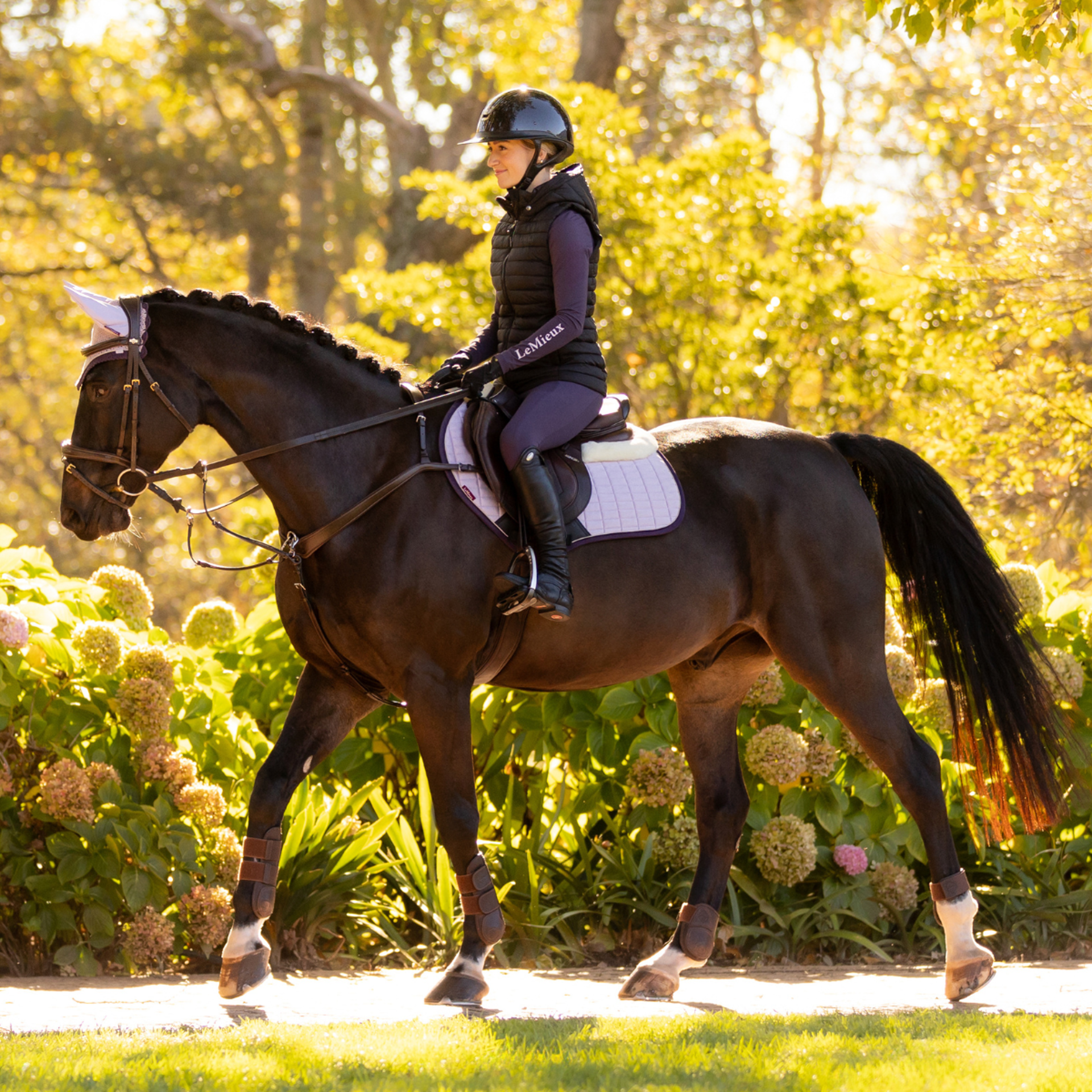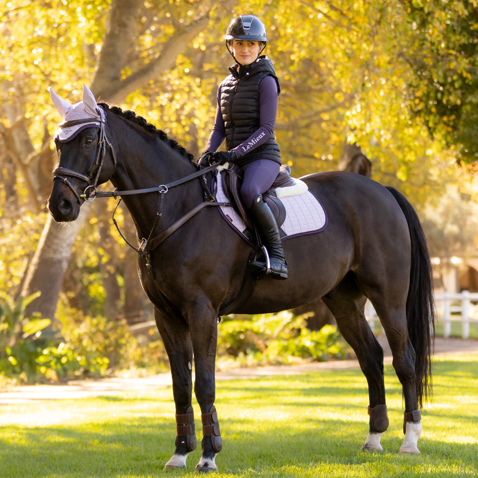 Combining style and function, the Merino+ Suede Close Contact Square offers the excellence expected from the Suede collection, with the comfort and pressure relief of our technical Merino+ blend, designed to fit forward-cut jumping saddles.Our Close Contact pads are not just any pads. They are expertly designed for jumping, with a high wither cut, elasticated D-ring tabs and a swept-back profile, providing the perfect fit for your jumping needs.Our Merino+ rolls are for more than just show. They deliver the look and security of a half pad without adding bulk under the saddle. Our unique Merino+ blend, which combines natural Merino with technical fibres for style and performance, keeps the saddle stable in style while reducing pressure on your horse's back.A durable suede-effect fabric upper pairs with our signature soft, breathable, friction-free bamboo lining. The natural bamboo blend lining material controls heat and efficiently wicks sweat to keep your horse cool.The whole pad benefits from extensively researched friction-free suede-effect binding, which is specially fabricated to contour the edges smoothly. This new technique helps retain the perfect saddle pad shape and binding profile.The durable, textured PU leather girth protection area protects the pad from the rider’s boot, and our signature LeMieux inner girth strap channels ensure a precision fit.