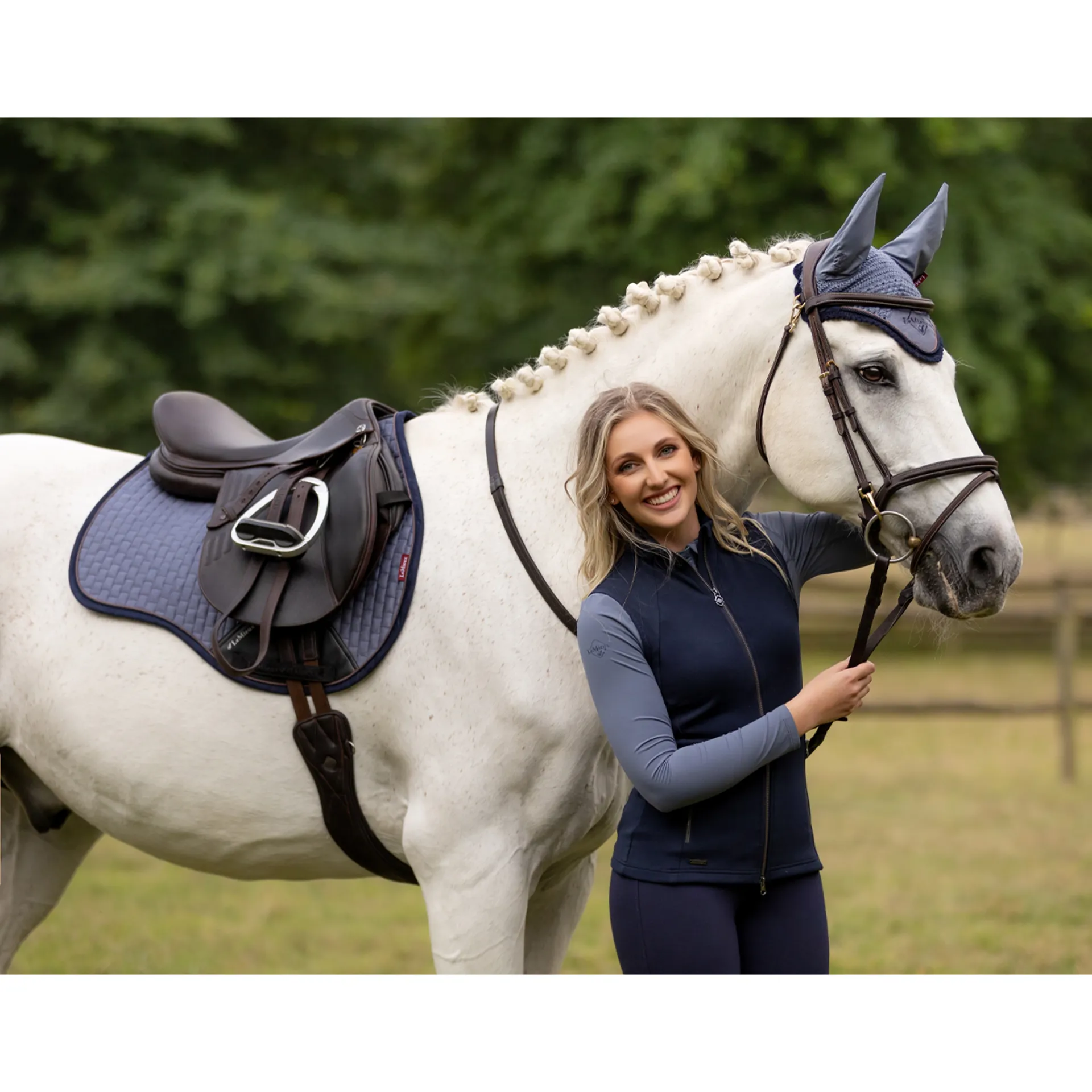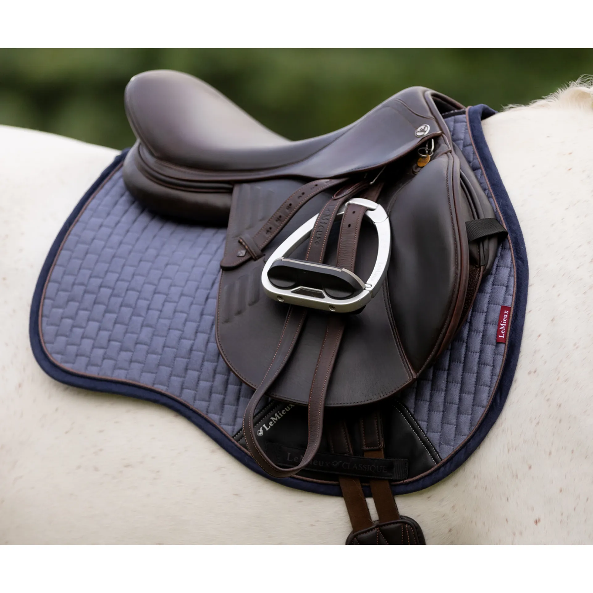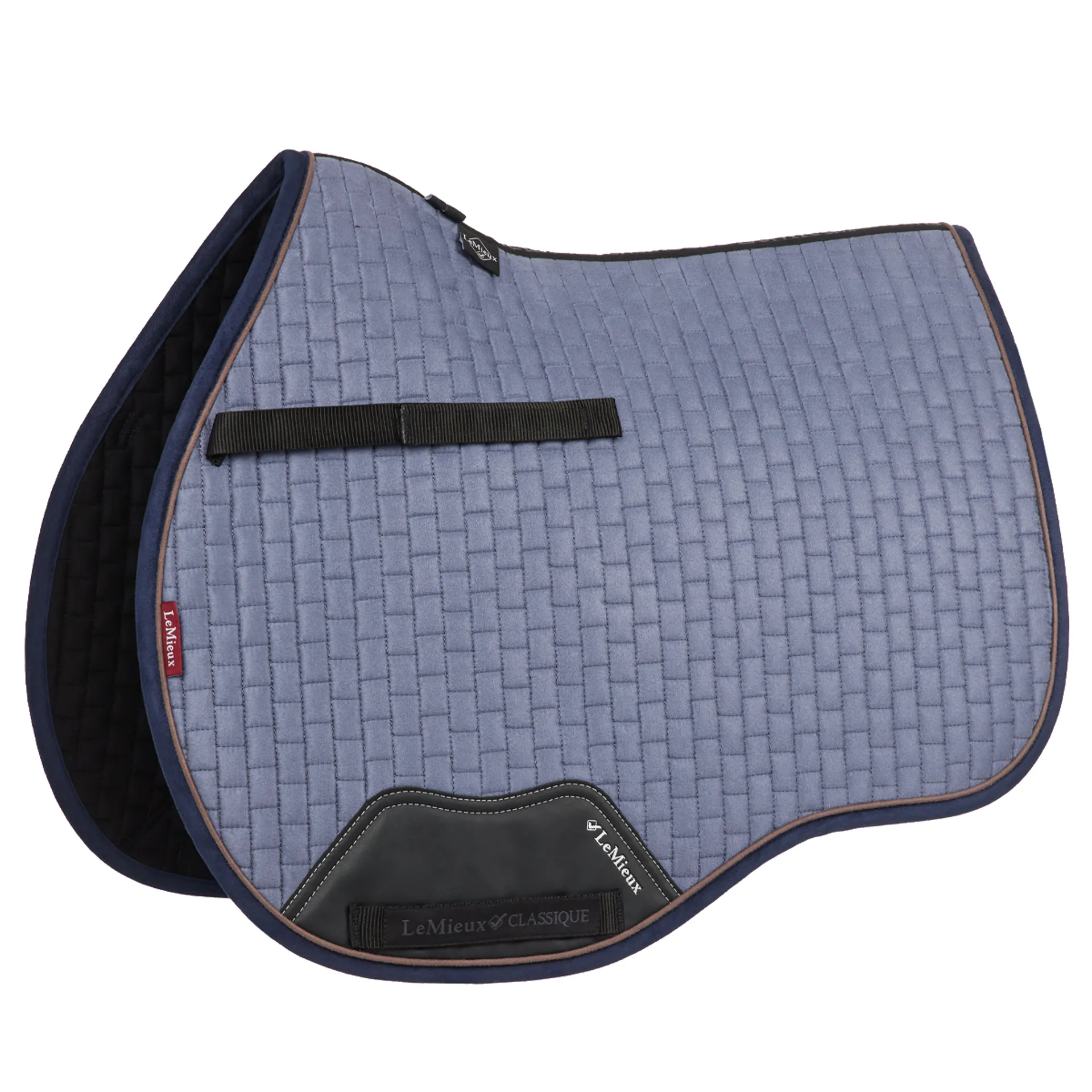 Now with a new super soft suede binding and PU leather girth protection area, the classic General Purpose Square Saddle Pad from LeMieux sets new standards in style and comfort and is designed to fit a wide range of general purpose saddles.Now one of the most iconic pads with its high wither, elasticated D-Ring tabs and swept back profile, these saddle pads offer a very sleek and professional look to anyone’s saddle.The luxurious suede top side and new soft suede binding is complemented by super soft bamboo lining which absorbs and controls sweat under the saddle. It's also beautifully comfortable and secure, minimising friction even on sensitive-skinned horses.Girth keepers incorporate inner locking loops to offer more girthing options. There are several attractive colours to choose from, too, with more new shades added seasonally to suit your style. We also have a selection of new small/medium pads to accommodate smaller saddles.Match your Suede General Purpose Saddle Pad with a Classic Fly Hood in the same colour to complete the look.