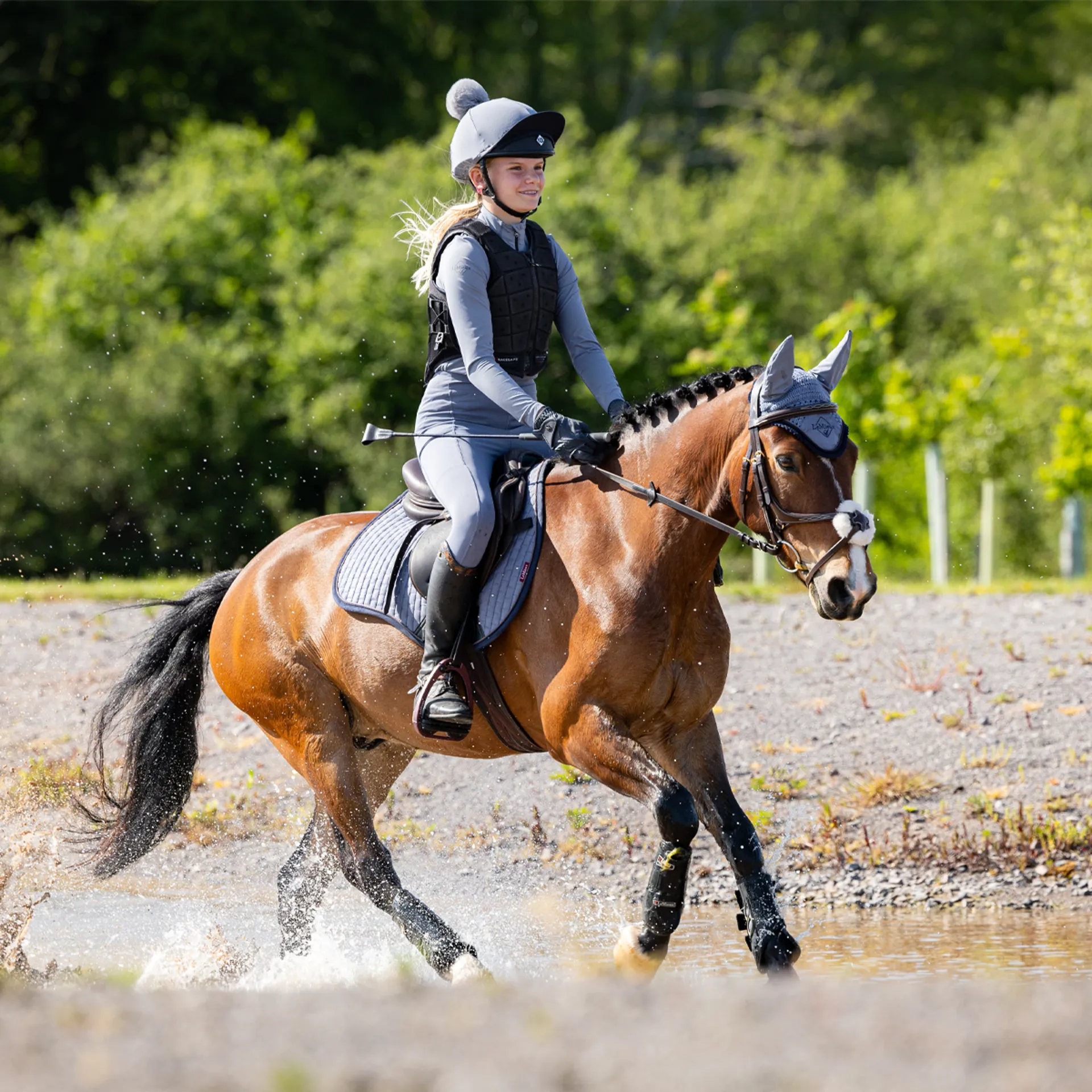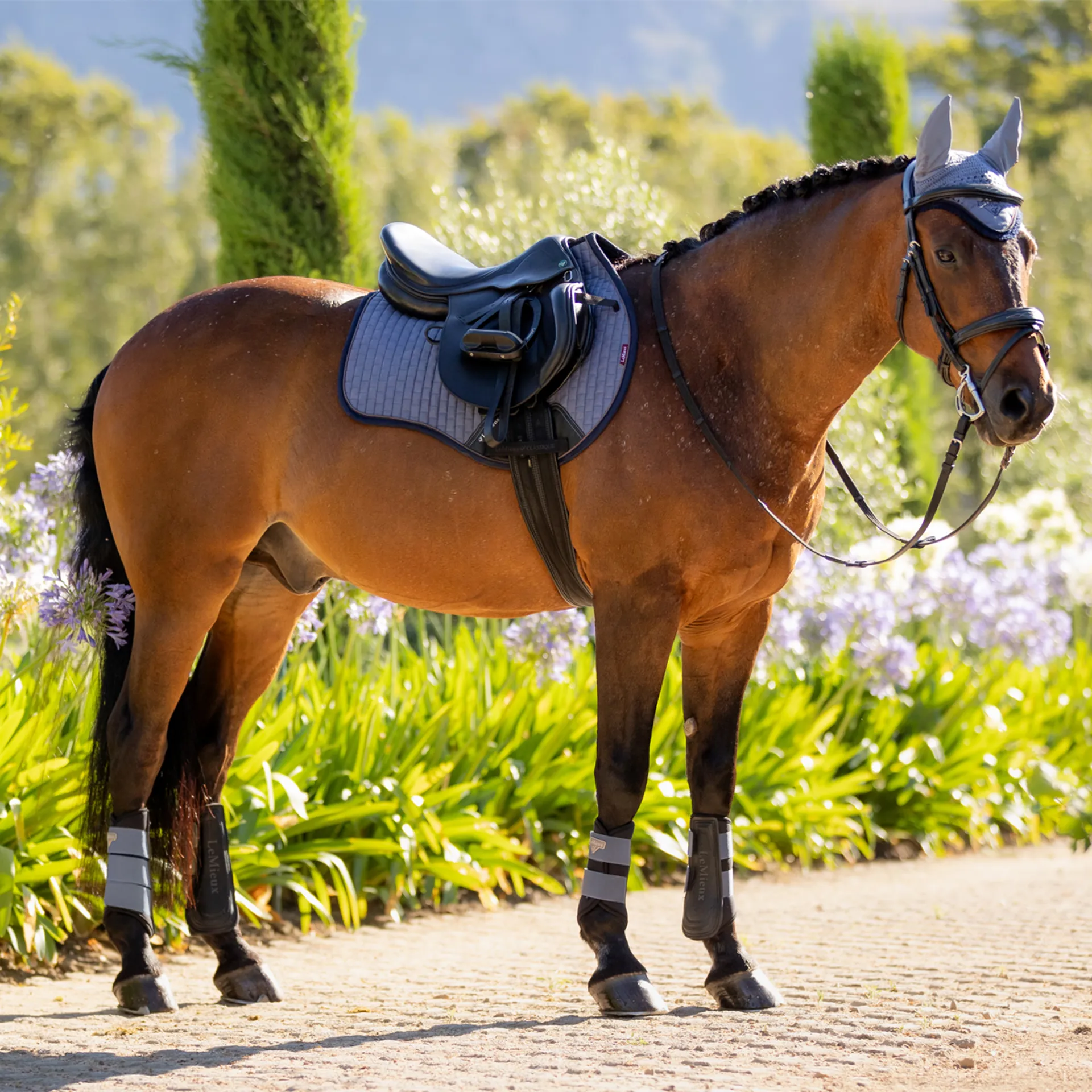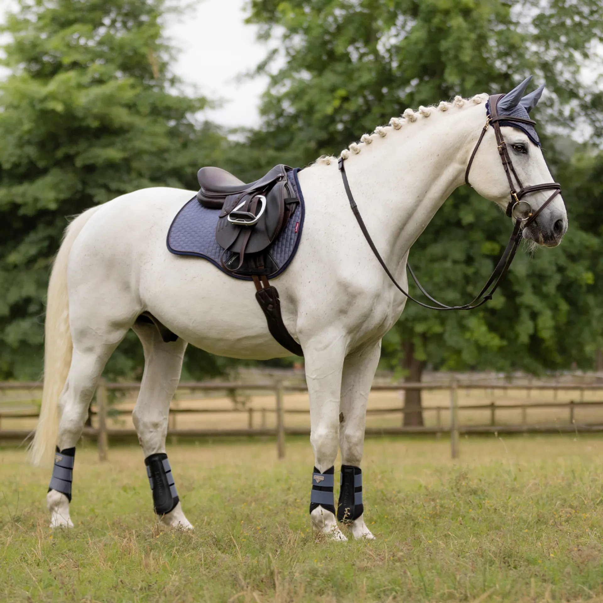 Now with a new super soft suede binding and PU leather girth protection area, the classic General Purpose Square Saddle Pad from LeMieux sets new standards in style and comfort and is designed to fit a wide range of general purpose saddles.Now one of the most iconic pads with its high wither, elasticated D-Ring tabs and swept back profile, these saddle pads offer a very sleek and professional look to anyone’s saddle.The luxurious suede top side and new soft suede binding is complemented by super soft bamboo lining which absorbs and controls sweat under the saddle. It's also beautifully comfortable and secure, minimising friction even on sensitive-skinned horses.Girth keepers incorporate inner locking loops to offer more girthing options. There are several attractive colours to choose from, too, with more new shades added seasonally to suit your style. We also have a selection of new small/medium pads to accommodate smaller saddles.Match your Suede General Purpose Saddle Pad with a Classic Fly Hood in the same colour to complete the look.