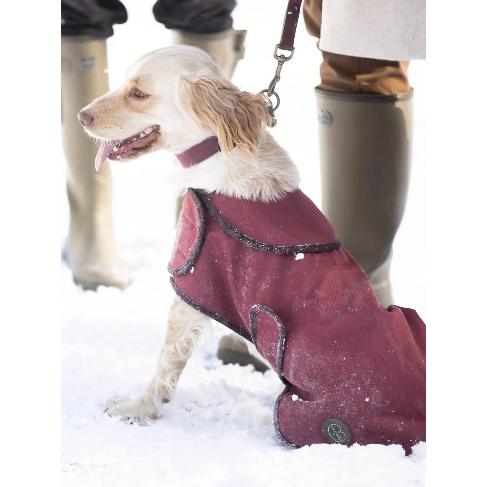 Keep your four-legged friend warm and dry with a dog coat for the chilly winter months. Available in three sizes, Small (35cm), Medium (47cm) and Large (58cm), ensuring we can cater for most dog breeds. Our dog apparel is perfect for all weather conditions and activities, ensuring your dog will stay comfortable out in the hardest of weathers or terrains. Our durable outer fabric and luxurious fleece lined inner will keep your pet warm and comfortable on long walks. A hole at the neck means you can attach your lead to your dog’s collar when wearing the coat. Our signature Le Chameau logo adorns the back of the coat meaning you can match your pet accessories with your favourite rubber wellington boots.Features include: