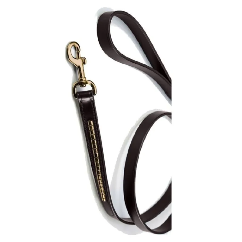 Schockemohle Jerry Leather Dog Lead With Clincher Detail - Antique Brown/Gold
