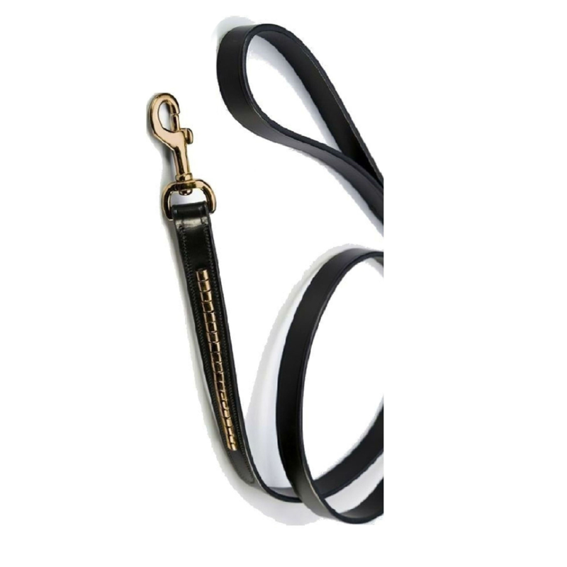 Schockemohle Jerry Leather Dog Lead With Clincher Detail - Black/Gold