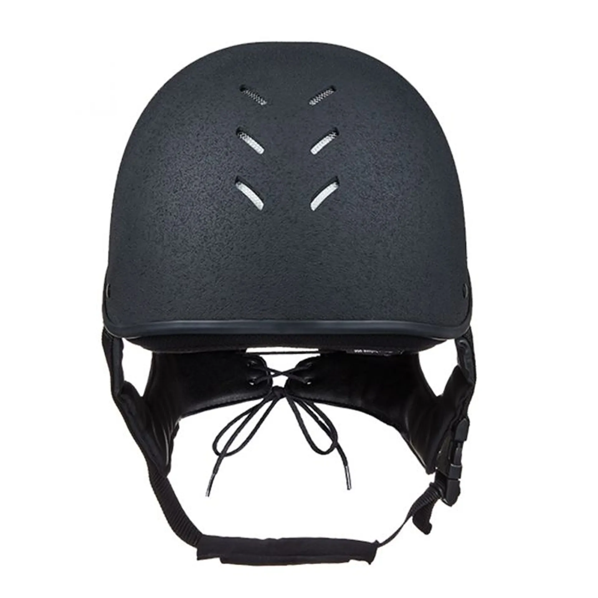 The upgraded leather look harness with reinforced nylon webbing and suede padding under the chin provides greater rider security and comfort.