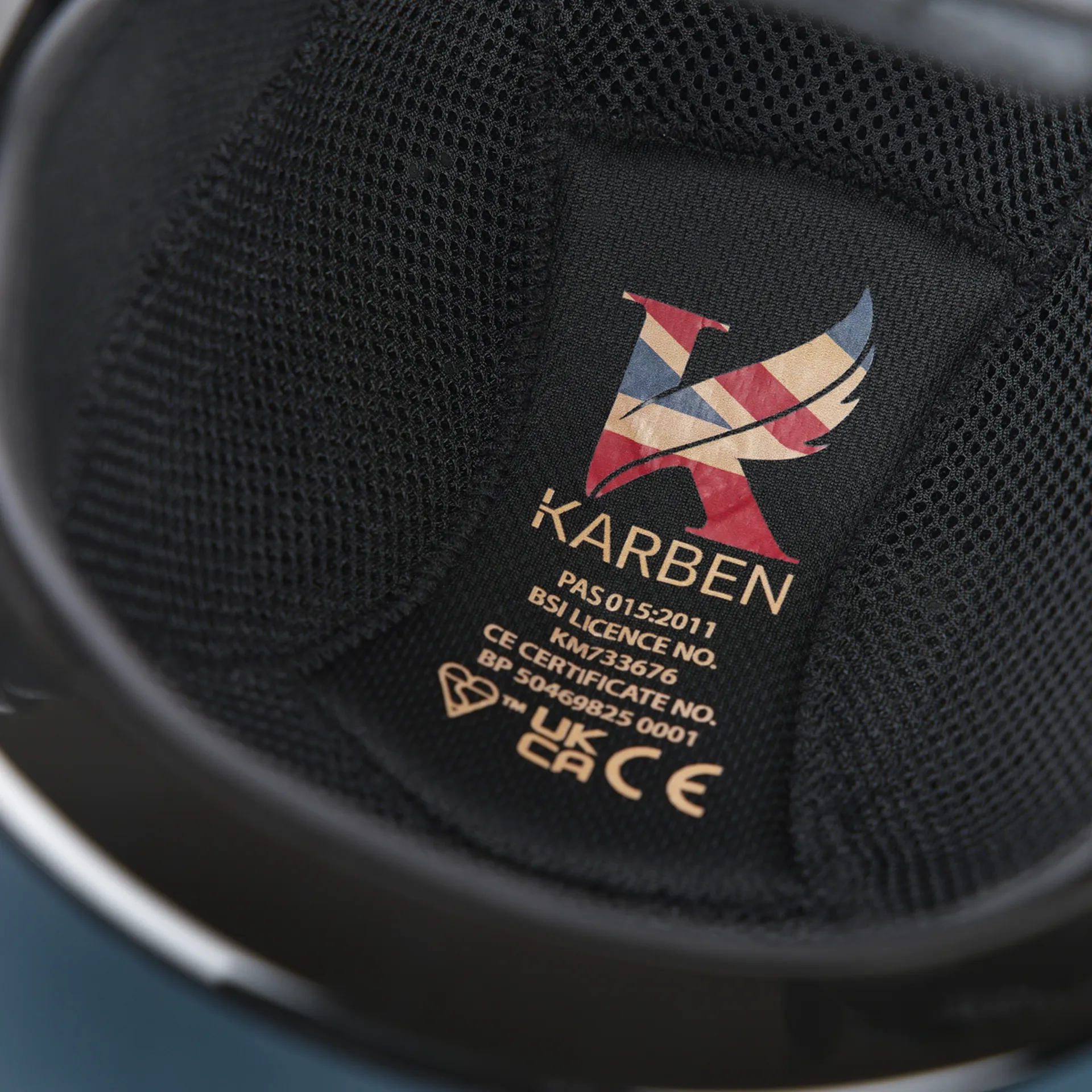 Elegantly presented with a flat matt jersey wrap, the Karben Elena riding hat offers deep colour quality which is complimented by a matt frame and self-colour vents. FINER DETAIL: Low profile form. Smooth, lightweight outer shell. Neat and flattering. Fixed peak - flexible for impact energy absorption in the event of a fall. BESPOKE FIT micro-adjustable dial system. MAXIMUM COOLING EFFECT front and rear air vents. THERMOREGULATING 3D mesh liner. CoolDryTM headband. Expanded polystyrene inner shell with ventilation holes. Fully adjustable 4-point harness with leather look side panels. Quick release harness buckle. Removable anti-rub chin guard. Machine washable removable inner linings. Certified to PAS 015:2011 and VG1. BSI Kitemark, CE & UKCA.