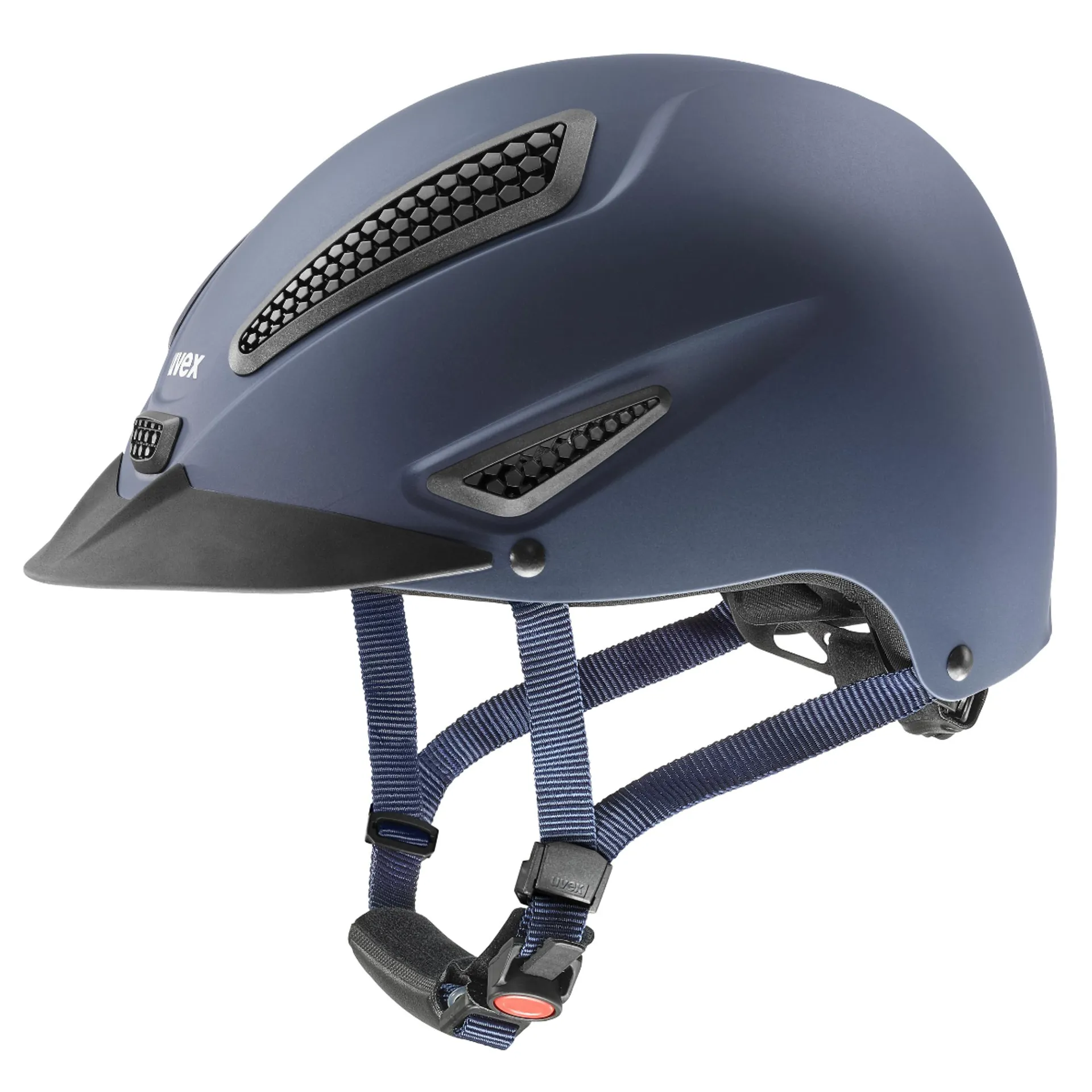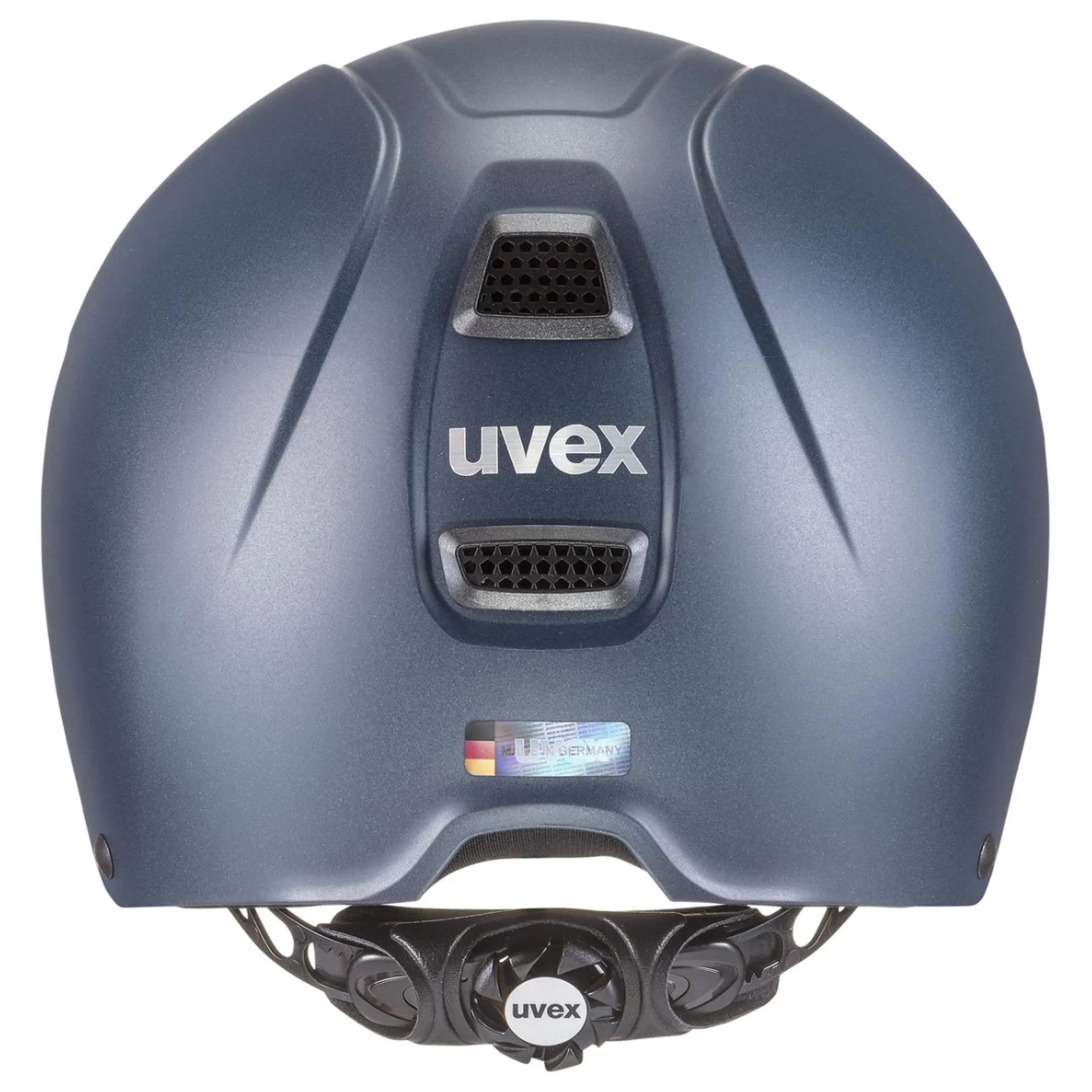 The uvex perfexxion III is the perfected combination of sportiness, climate control and safety. The uvex product developers and designers have put their entire expertise into the creation of this riding helmet: one of the safety-relevant innovations is the outer shell, which has been extended down to the back of the head. Extending the shell over the neck provides a maximum of safety – for the back of the rider’s head as well. A cut-out for ponytails makes for a comfortable fit. Innovation is clearly visible in this helmet: due to its slim shape, the perfexxion III is particularly light and perfectly adapted to meet the ergonomic demands of active riding. This riding helmet is a true pioneer in terms of its light weight and comprehensive protection. Complementing the innovative design is the uvex dynamic ventilation to provide optimal climate control. Thanks to large air channels in combination with a honeycomb structure, the helmet guarantees optimum climate management at all times. Additional comfort for the wearer comes from the lining: washable pads made from a soft-touch material and memory foam as well as the 3D IAS size adjustment guarantee a perfect fit on every head at all times. With the new perfexxion III, riders can easily forget that they are wearing a helmet at all.Weight - 470gStandards - EN 1384:2023-06 + 1384 + ASTM F1163We are proud to say that most of our products are "Made in Germany" and every single piece with "Made in uvex" is guaranteed to stand for our quality promise. At our sites in Fürth, Lederdorn and Obernzell, we combine traditional craftsmanship with state-of-the-art technology. Our products, which are 100% produced in Germany, proudly bear the label "Made in Germany" and thus stand for unsurpassed standards and first-class quality.Secure fit. Comfortable shape. Simple button operation. The anatomically shaped uvex monomatic sliding tab comfort fastener is button operated with just one hand. Allowing for precise adjustment of the chin strap to create a snug helmet fit. Easy peasy.