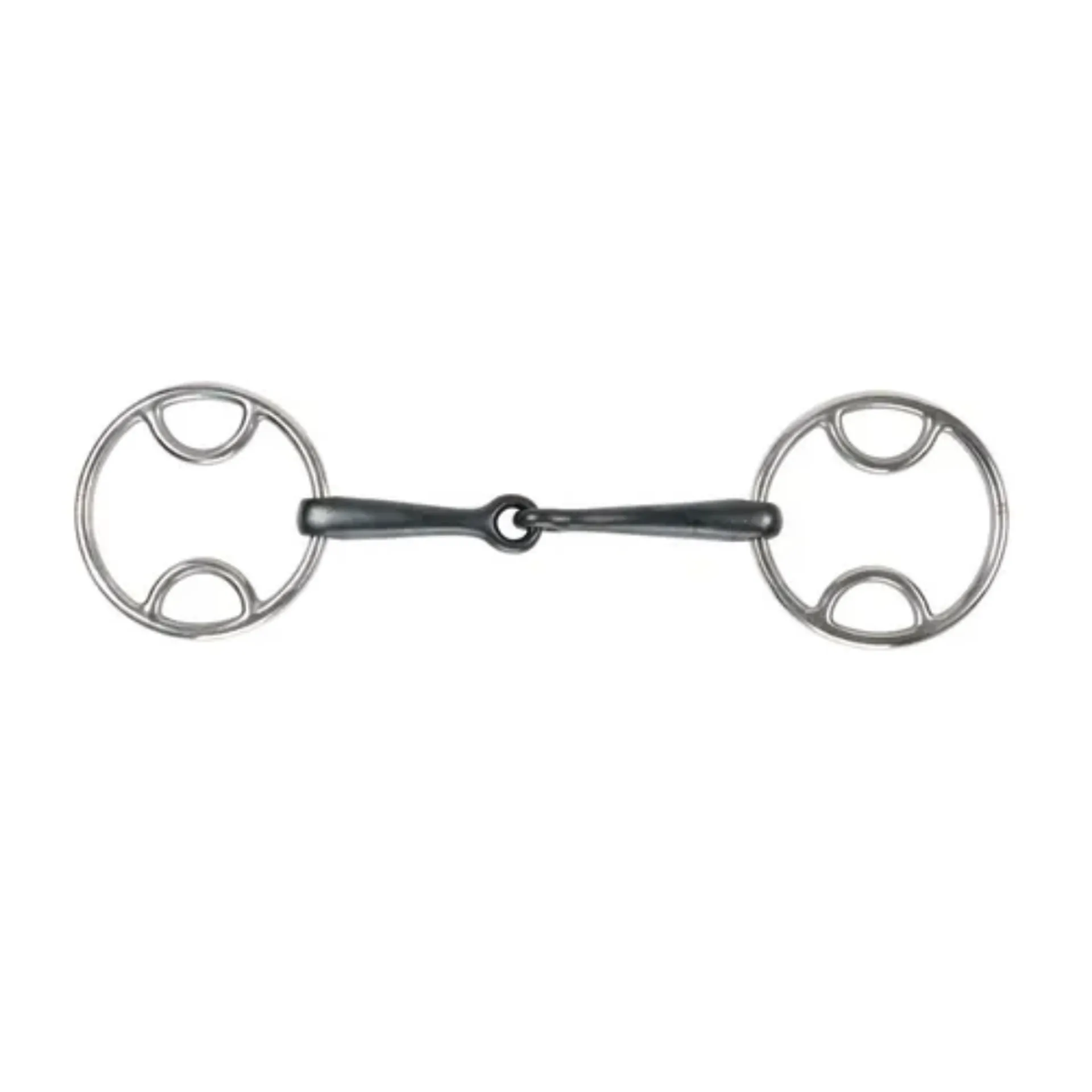 The bevel bit allows mild leverage and offers a little more control, promoting outline, head carriage and responsiveness. The sweet iron encourages salivation. Mouthpiece thickness: 14mm. Cheek height: 55mm (4.5, 5), 70mm (5.5).