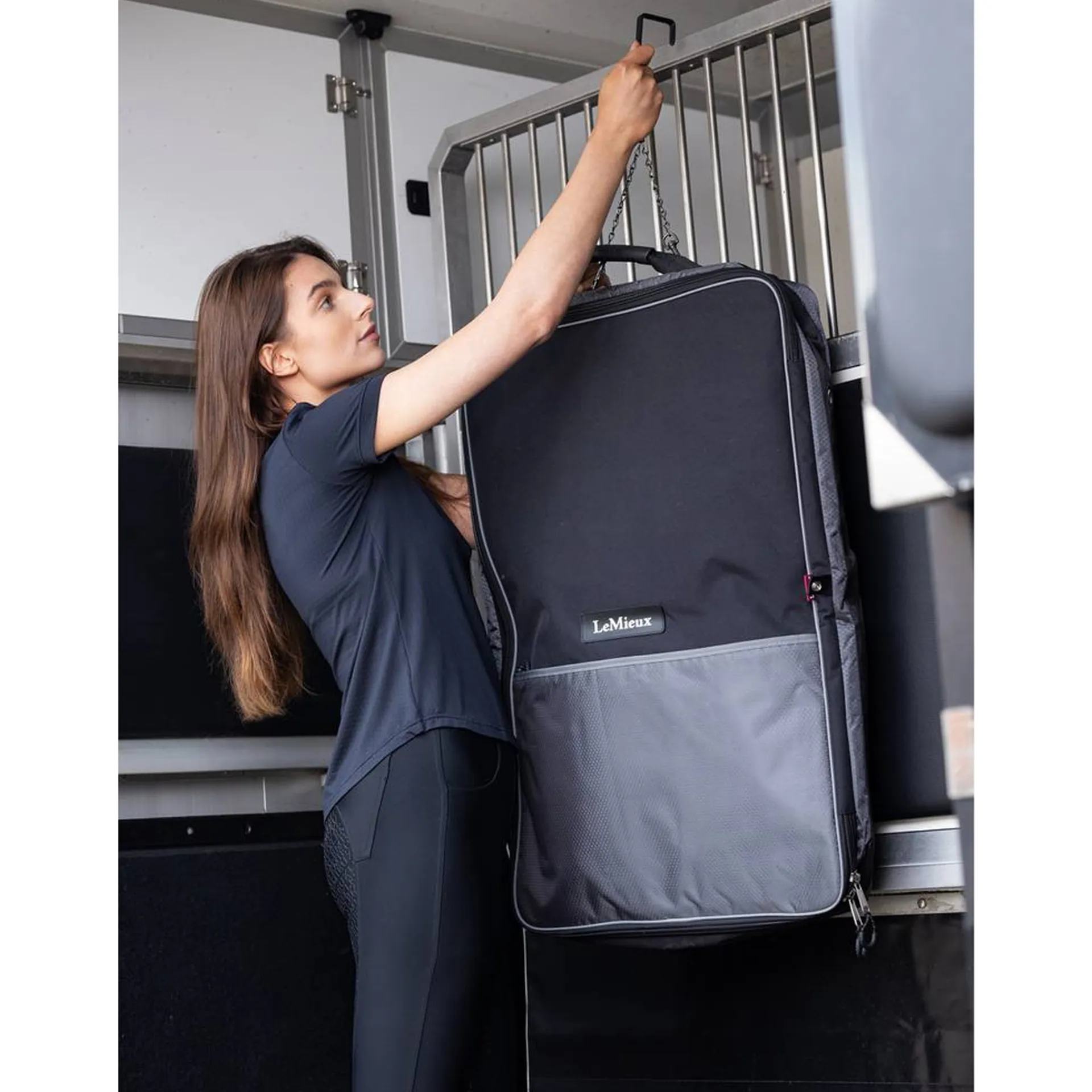 This smart luggage item stores, protects and carries two bridles, with a top hook for easy hanging anywhere.