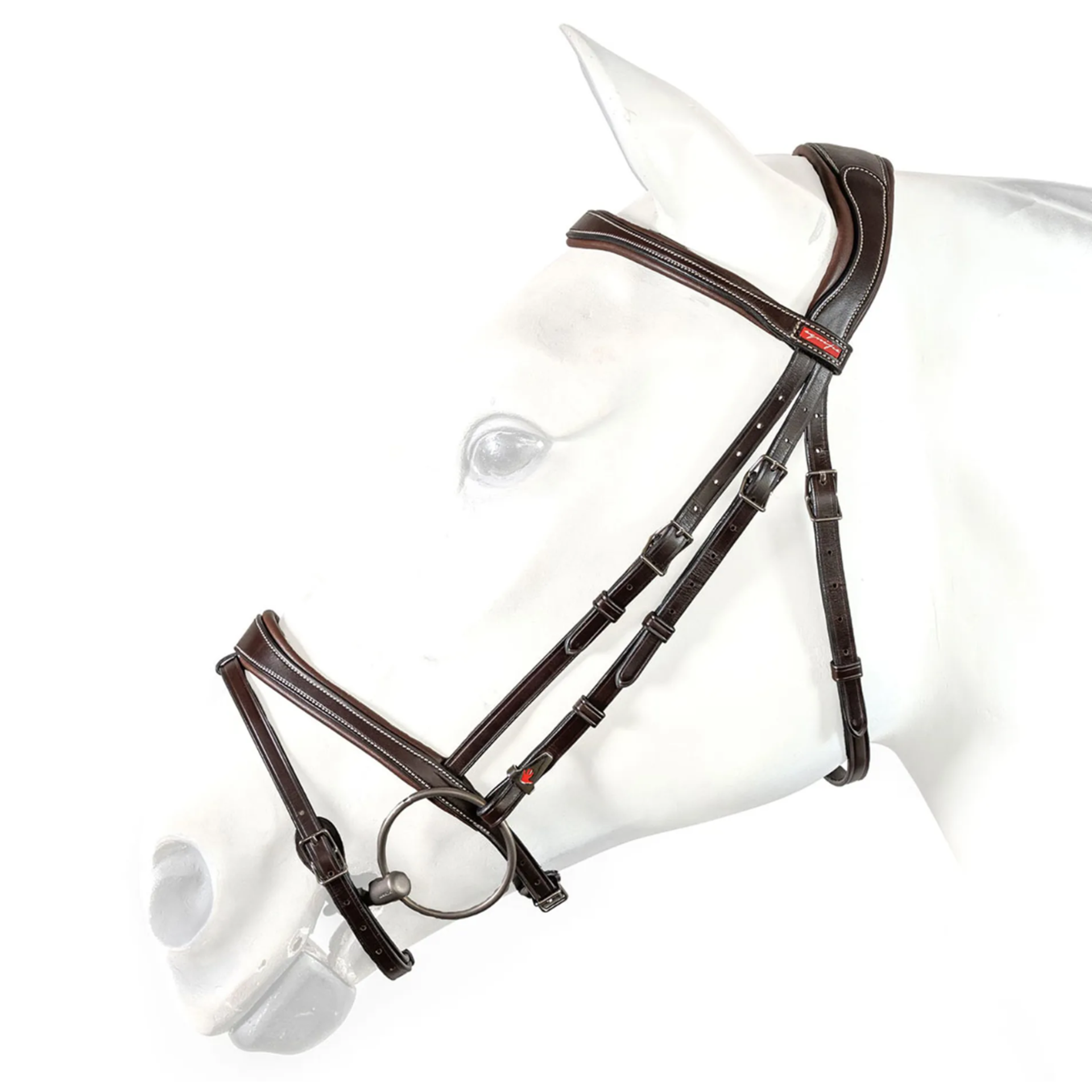 Flash bridle with an ergonomic padded headpiece in the central part to relieve pressure on the first cervical vertebrae.