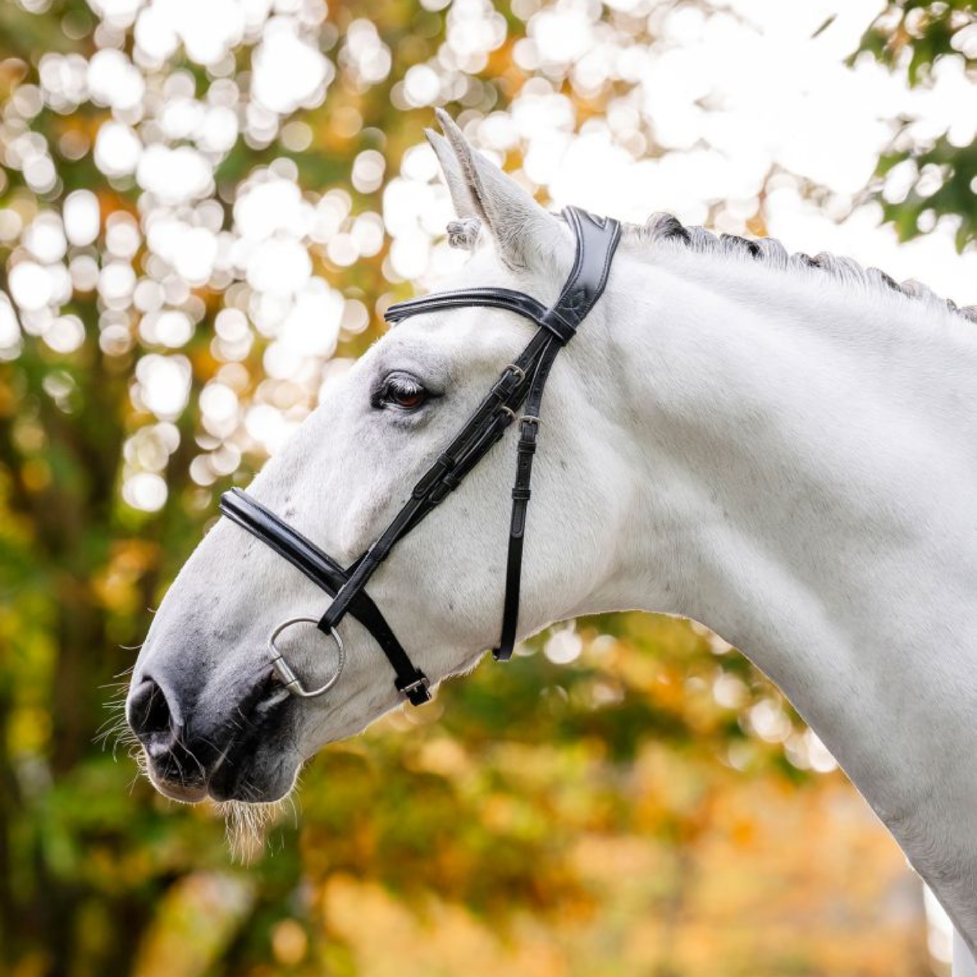 The noseband, browband, and headpiece are lightly padded for comfortable wear. Billet closure cheekpieces.