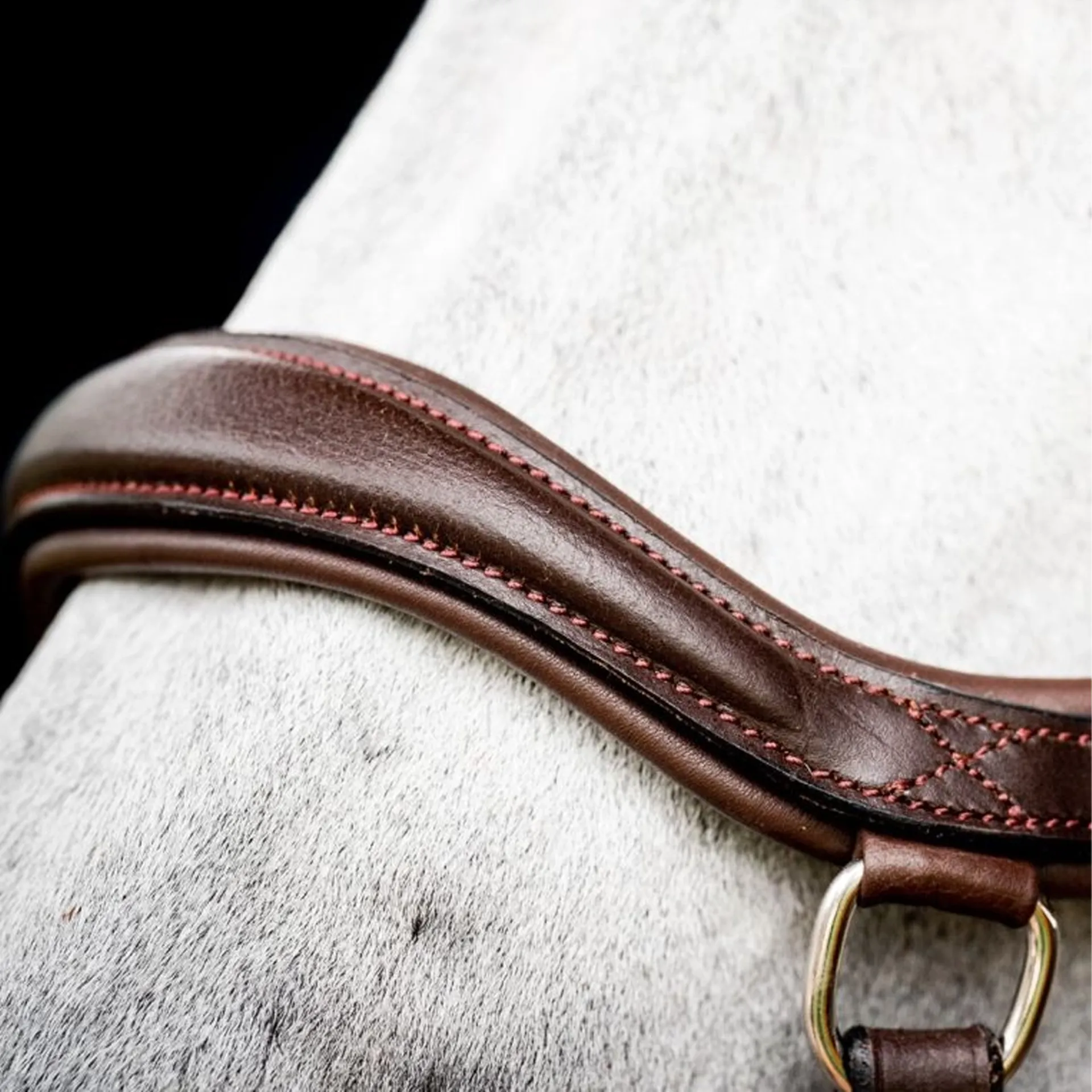 Unlike some low-fitting dropped nosebands, which can bring discomfort with breathing restrictions, the Micklem® Bridle noseband distributes pressure across a generous noseband design incorporating soft padding for a cushioned fit.