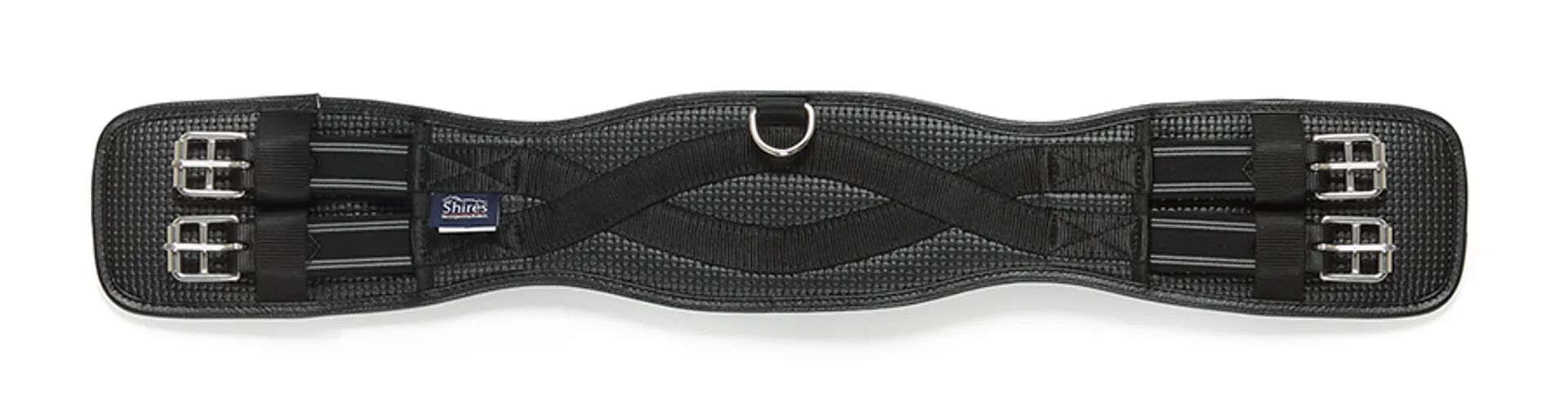 The ARMA anti-chafe dressage girth is made from durable waffle material that resists moisture build up to protect against rubbing and galls. The textured surface increases airflow to help control excessive sweat build up. Moisture resistant fabric stays soft and flexible, gliding over the skin without friction to avoid chafing. Anatomic contour shaping provides unrestricted movement around the elbows and increased support under the belly. Flexible, stretch resistant and wipe clean, reinforced with non-stretch nylon webbing. Pressure alleviating elastic inserts at both ends. Stainless steel roller buckles and fittings for long lasting performance.