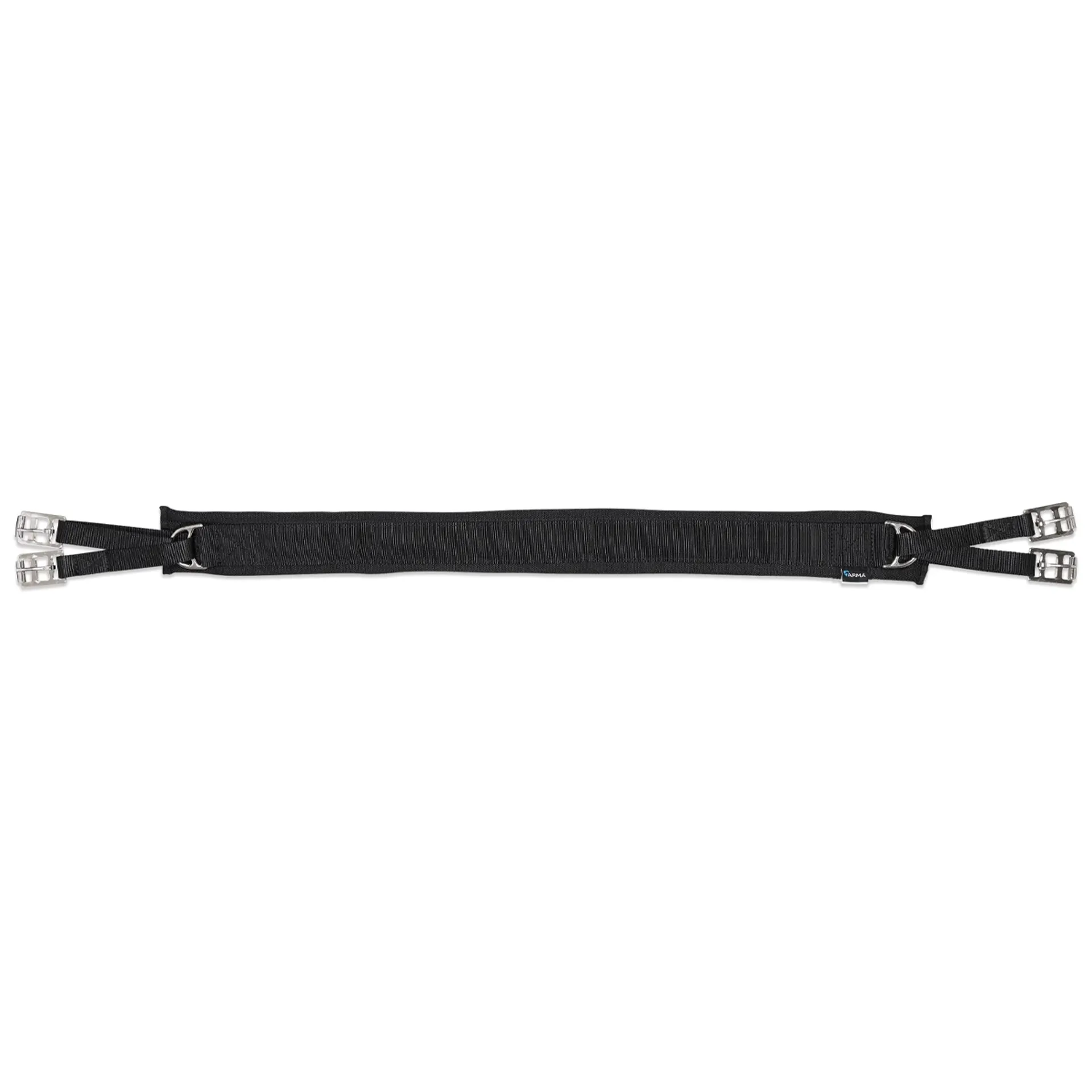 The breathable web fabric of the ARMA Humane cushion girth is strong and shock absorbing to provide general purpose comfort to the horse. An Ultra Dri Zone effect instantly wicks sweat from the horse, reducing the risk of rubbing and increasing comfort. Flexible and stretch resistant. The double-D system allows even distribution of weight to help reduce pinching and uneven pressure, making a very comfortable girth.