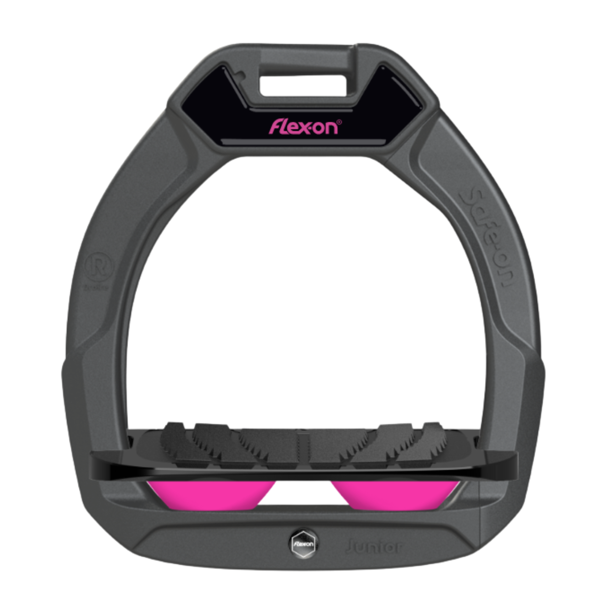 Question(s) asked regarding Flex-on Safe-On Junior Inclined Grip Stirrups - Dark Grey/Black/Pink