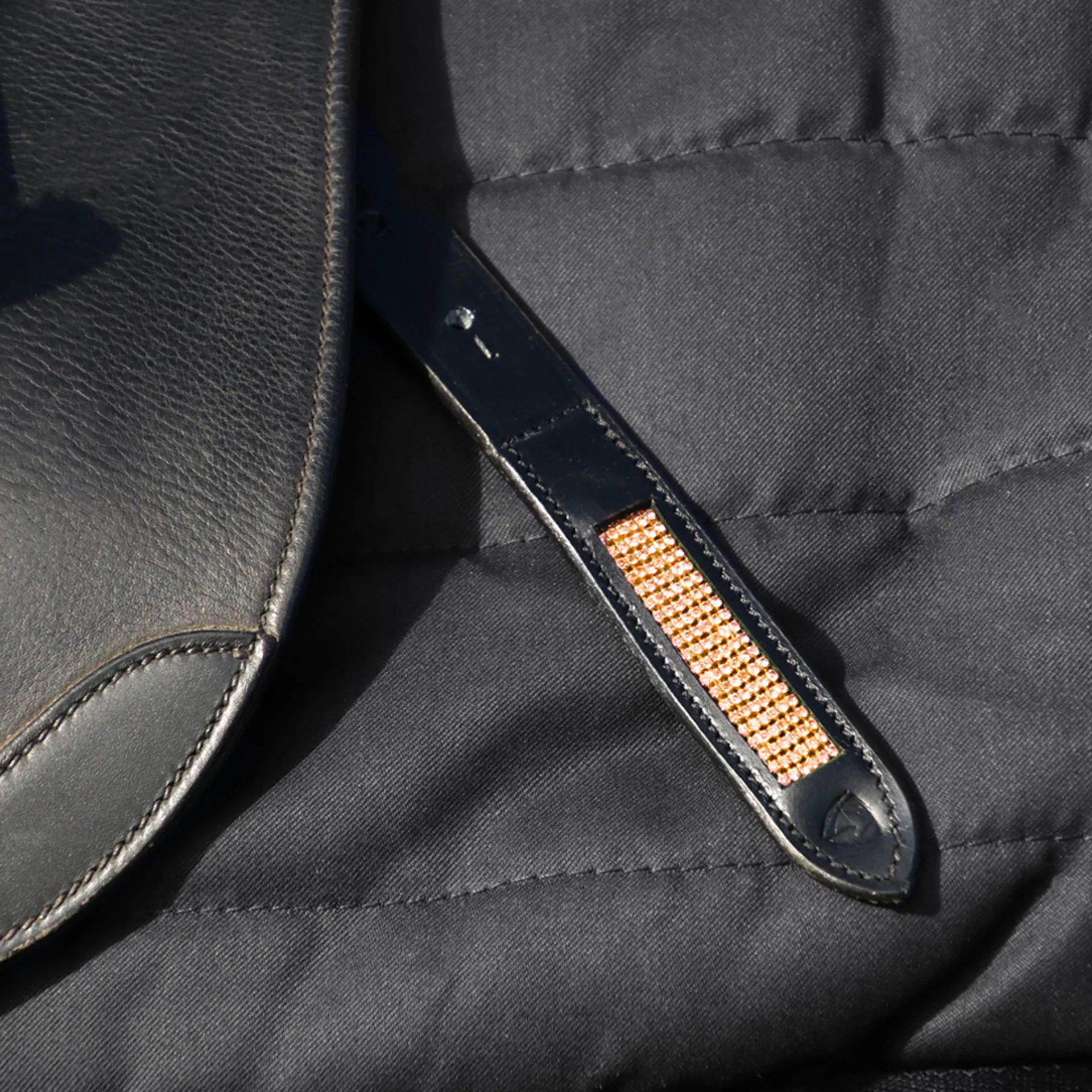 The soft leather is beautifully accompanied by rose gold diamantes and rose gold hardware. Finished with strong stitching for guaranteed durablility.