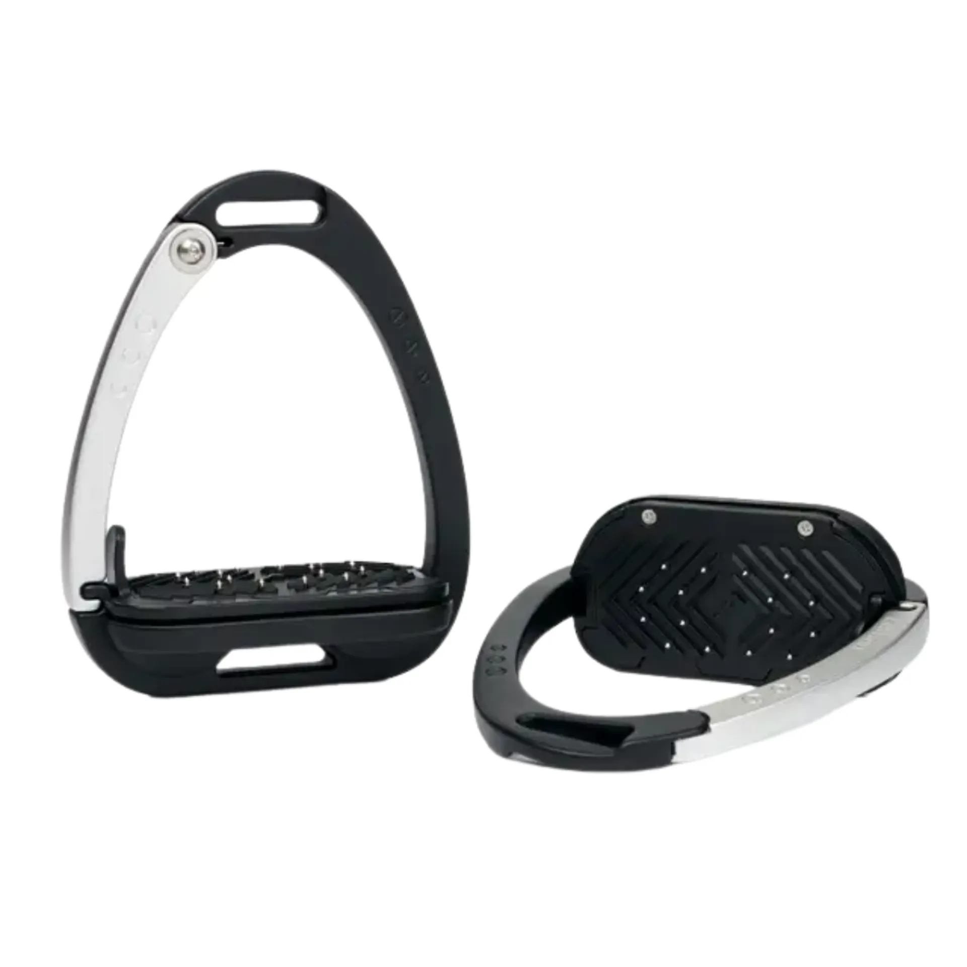 Vector stirrups are a new generation of stirrup - technically advanced and lightweight, but retaining a classic style expected from LeMieux.Machined from aviation grade aluminium offers an impressive strength-to-weight ratio, making them lighter than most stirrups on the market at just 419g each, whilst not compromising on stability.The ergonomic footplate of the Control Stirrup is set at 0° with a cross-track grip surface with embedded hardened steel pins to provide maximum security for the boot.The footplate is supported by a twin-balance arch system that distributes the weight evenly across the base of the stirrup frame. The apex of the frame is recessed and off-set, encouraging a 45° outward orientation which makes it easier for the rider to locate the optimum angle for the foot and regain a lost stirrup.An integrated hinged arm has a two-stage release system, preventing unintentional opening. The spring-loaded arm locks into the base of the main frame meaning that when under maximum pressure, such as landing over a fence, the rider's weight is spread evenly across the stirrup, preventing the outside from dropping and flexing. When pressure is put onto the arm of the stirrup, the arm releases allowing the foot to come out of the stirrup, minimising the risk of dragging. The stirrup arm breakout force = 36N (equivalent to 3.62kg) in testing, meaning enough resistance to stop it from opening unintentionally, but will release when needed.It's important to note that no stirrup of this design (with a quick-release arm) is 100% guaranteed to open in the event of a fall. There are several factors, including a fall of the horse, a loose girth causing the saddle to slip, or a slow or unusual angle of exit that may not generate enough lateral force to open the release arm. This is very rare but users must be aware that no stirrup is completely foolproof in every eventuality.Competition Legal (FEI, British Dressage, British Eventing and British Showjumping).