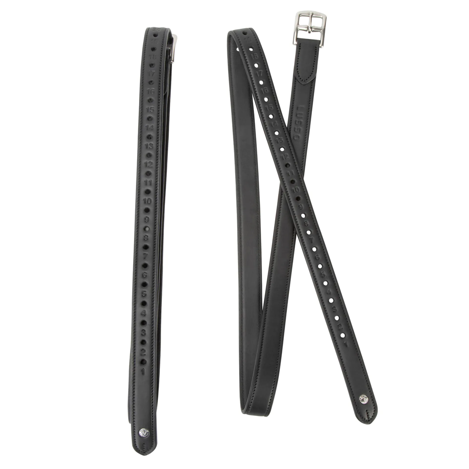 Designed with sensitivity and precision engineered, Velociti LUSSO Pro Series Luxe stirrup leathers are the perfect partner for the next level equestrian. Crafted with two layers of European leather with a centre nylon core for a very durable, non-stretch stirrup leather. Immaculately finished with a flat cut burnished edge to compliment your saddle. Elegant profile curved buckles allow a neat position at the saddle stirrup bar. Tech detail: Leatherwork is carefully crafted in selected European leather for beautifully supple, reliable leatherwork that features the latest design advancements and reassuring comfort for your horse. High shine stainless steel hardwear. Eco-friendly vegetable tanned leather, hand-stitched in self-colour thread. Finished with a Velociti signature stud detail. Punched LUSSO stamp and numbered holes.
