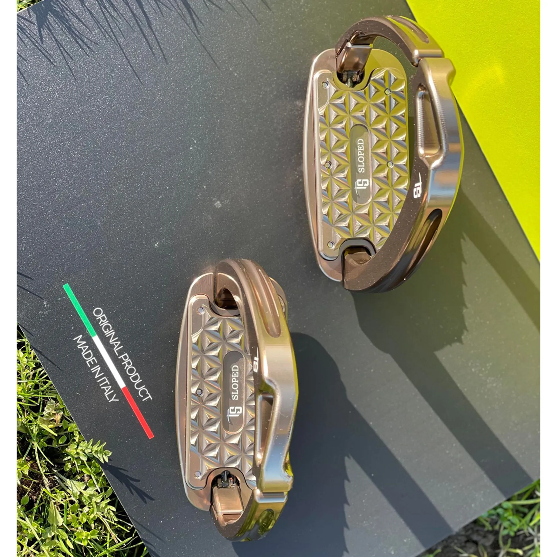 The grip was specifically studied for the jumping and the cross-country disciplines: it ensures the maximum wet and dry adhesion, andits 2,5° inclination helps keep heels down.