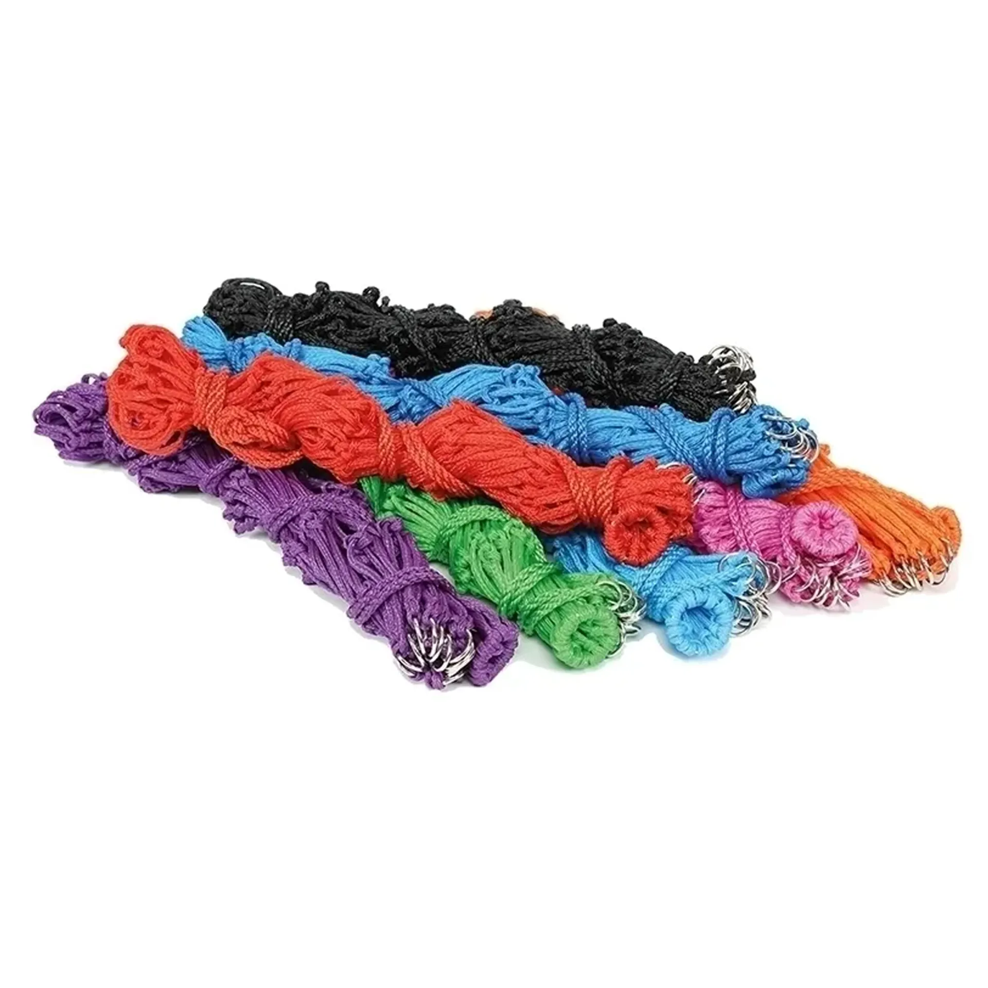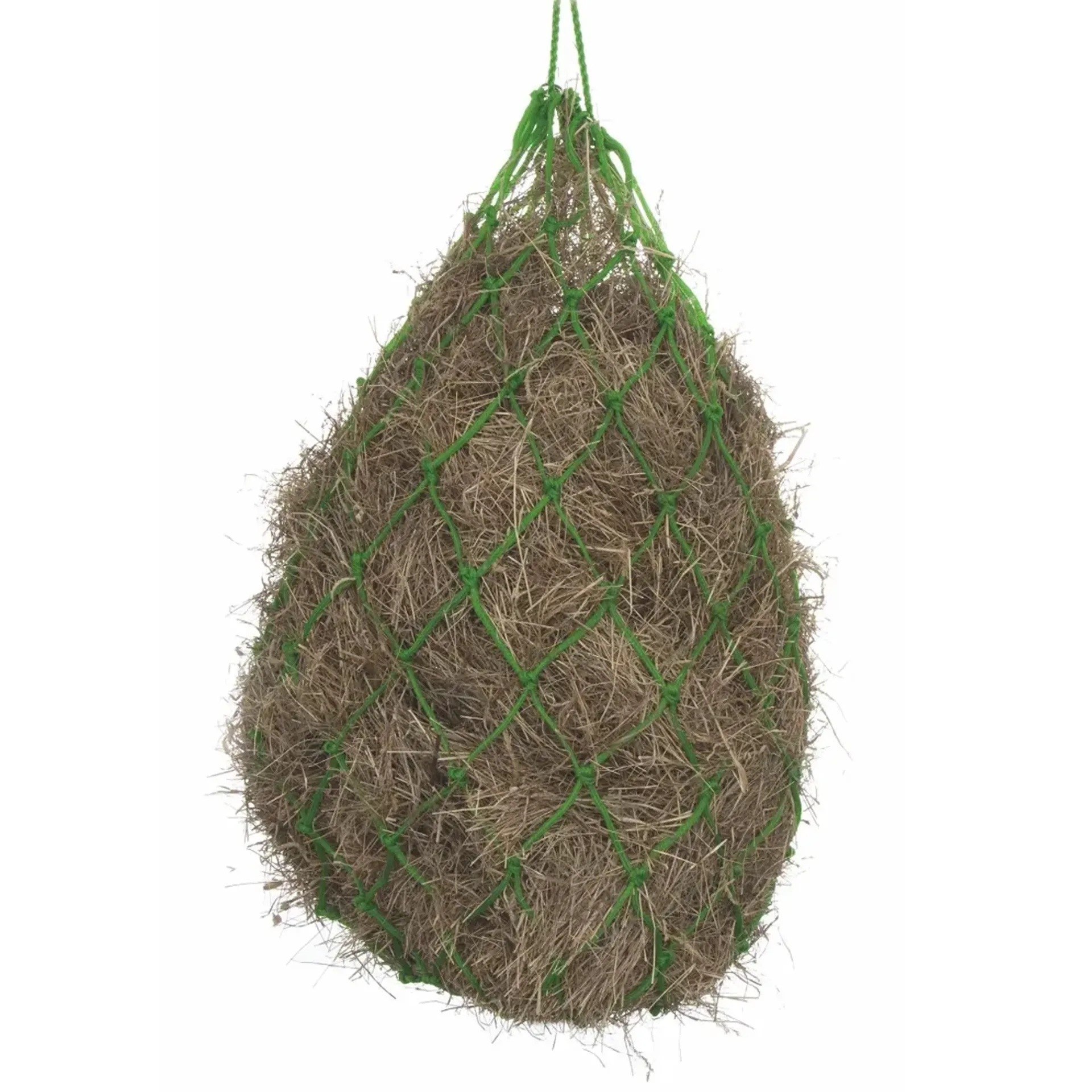 Extra strong nylon haynet with larger holes and metal rings.Mesh size: 10cm (4"). Size: 42" (107cm) long, 6.5kg capacity. Length: 42" (106cm), capacity: 6.5kg. Mesh size can be +/- 0.5cm. Capacities are approximate and given only as a guide to the differences between haynet size.